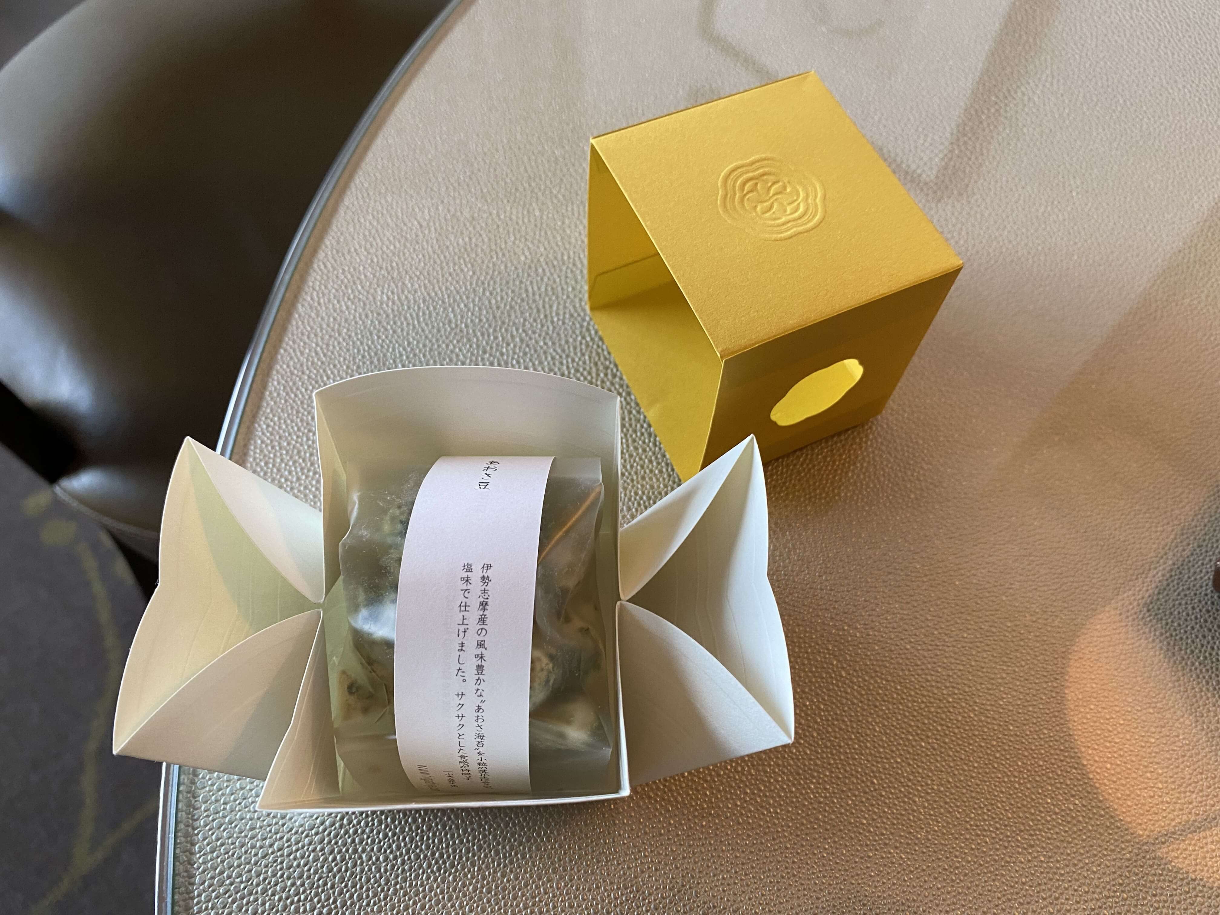 豆菓子はHIGASHIYAで、ティーバッグは「寿月堂」製。