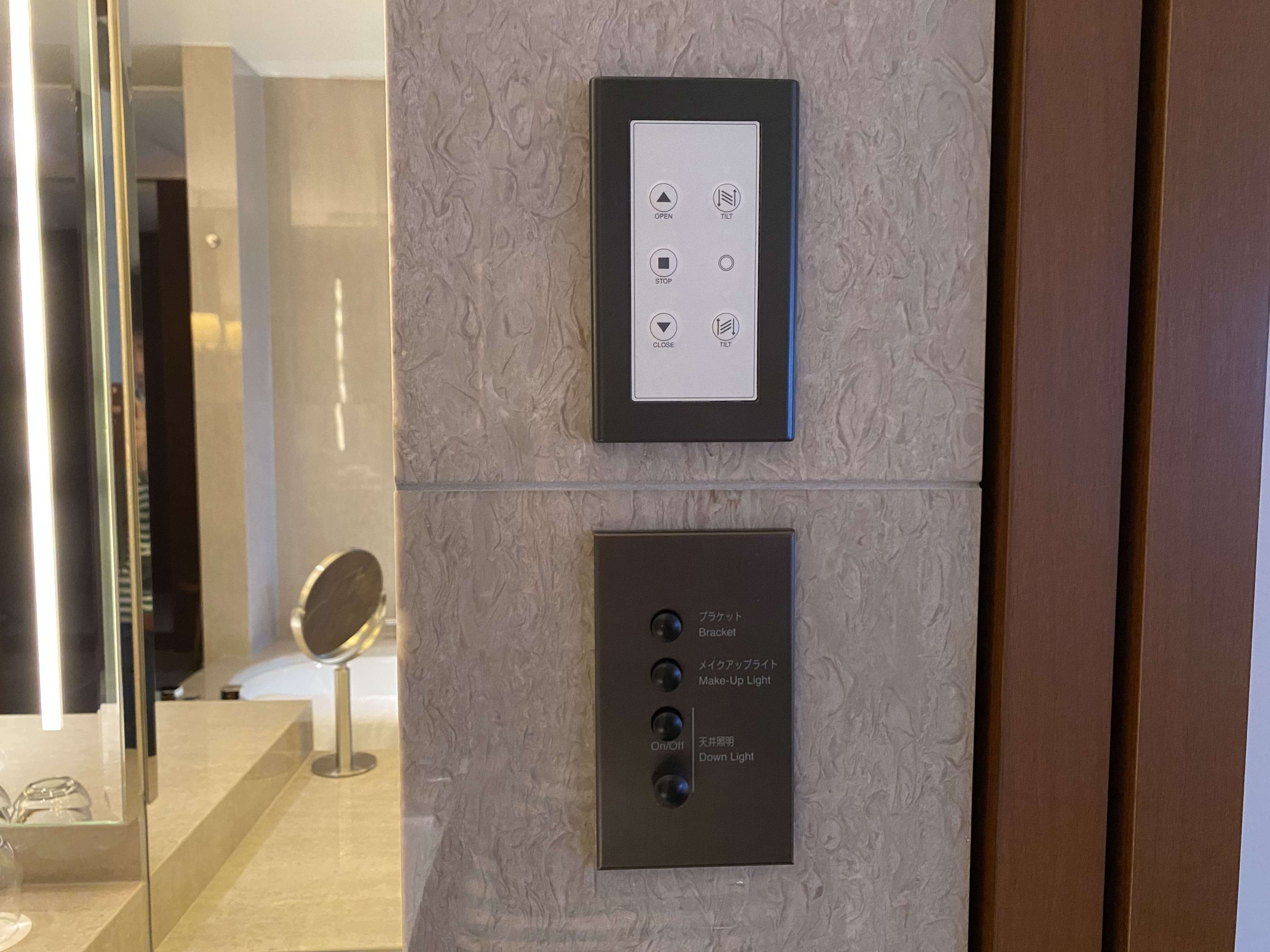 ▼こちらが、ブラインドの調整ボタンとバスルームのライトの調整ボタンです!