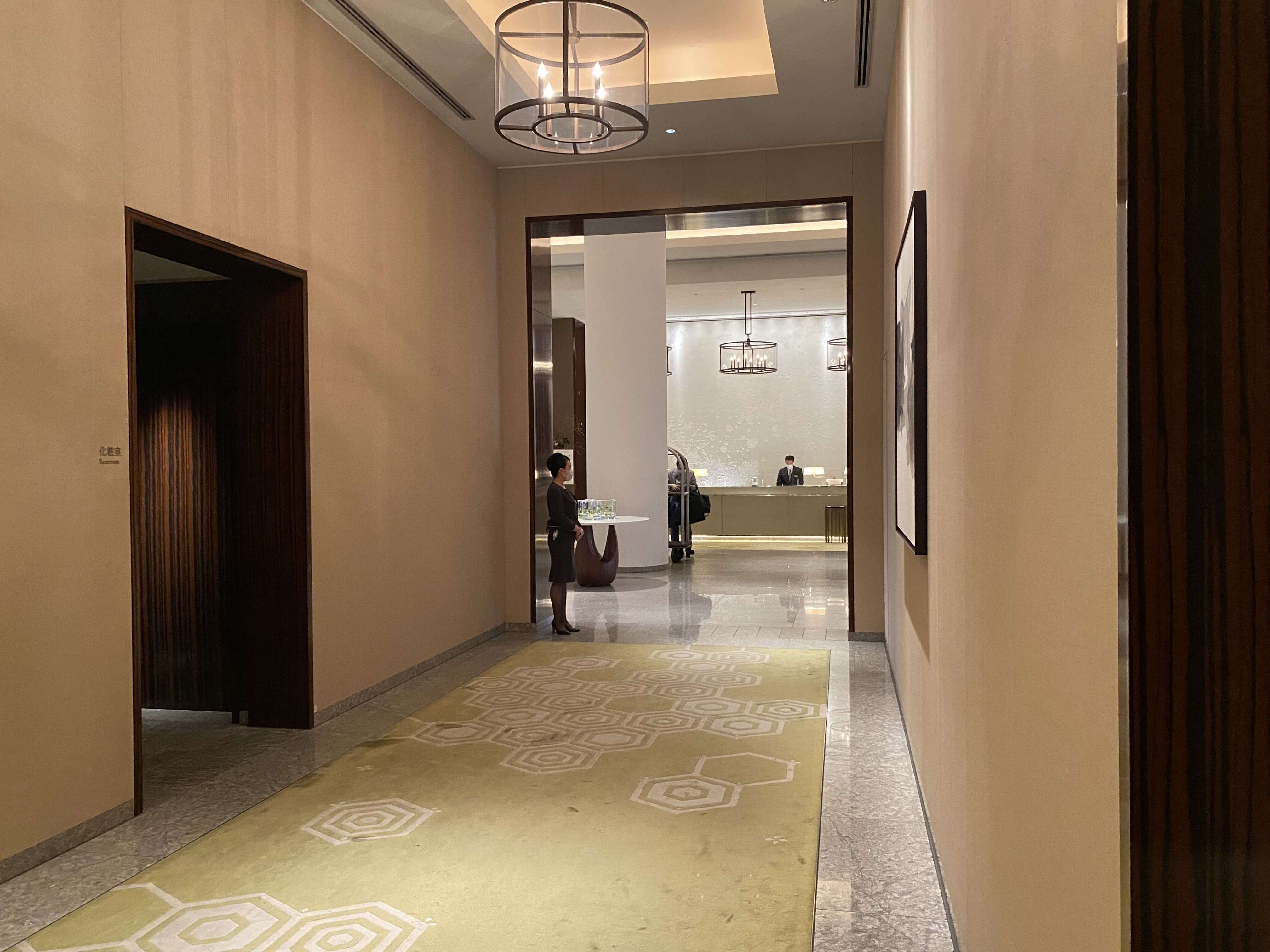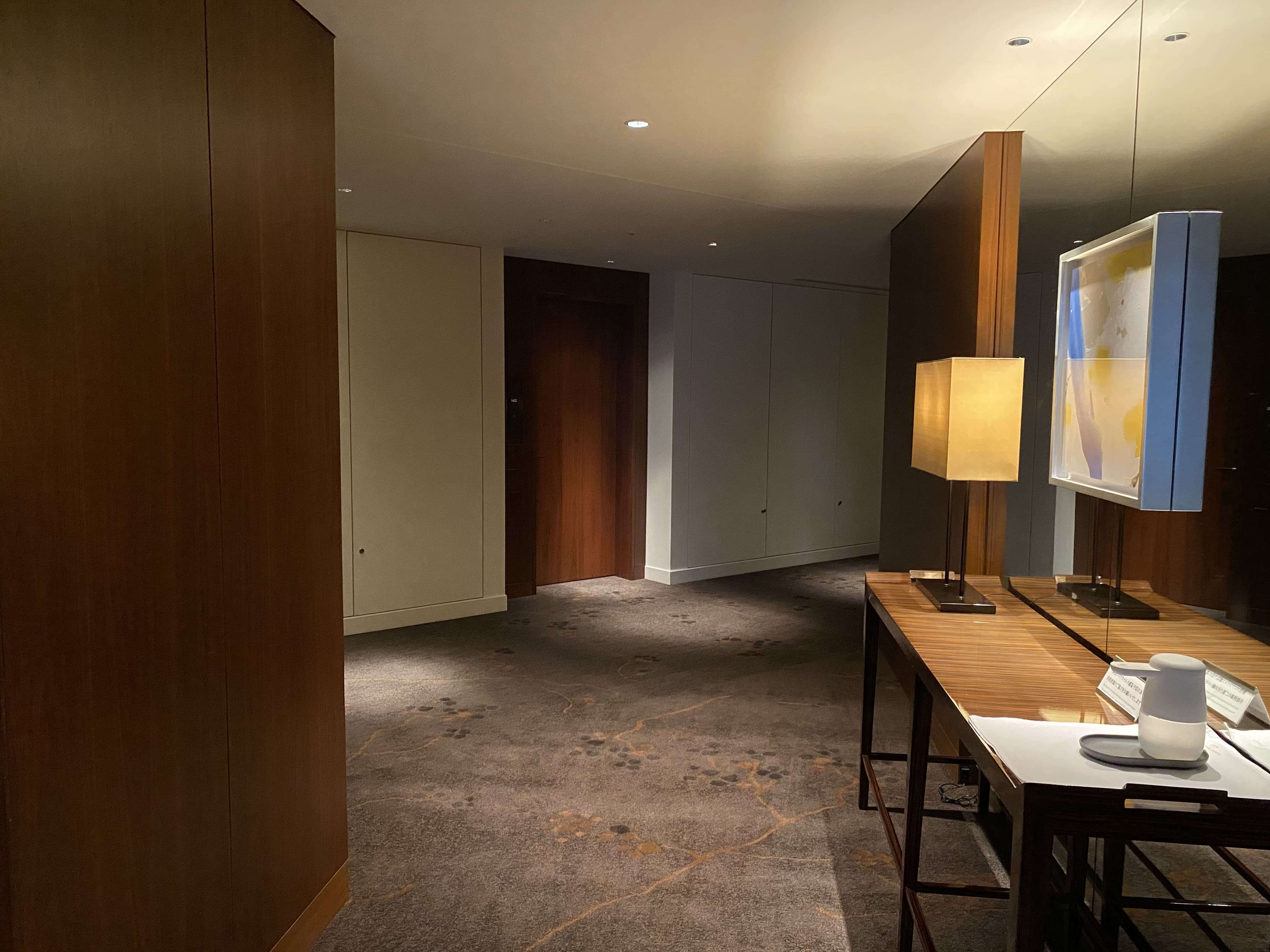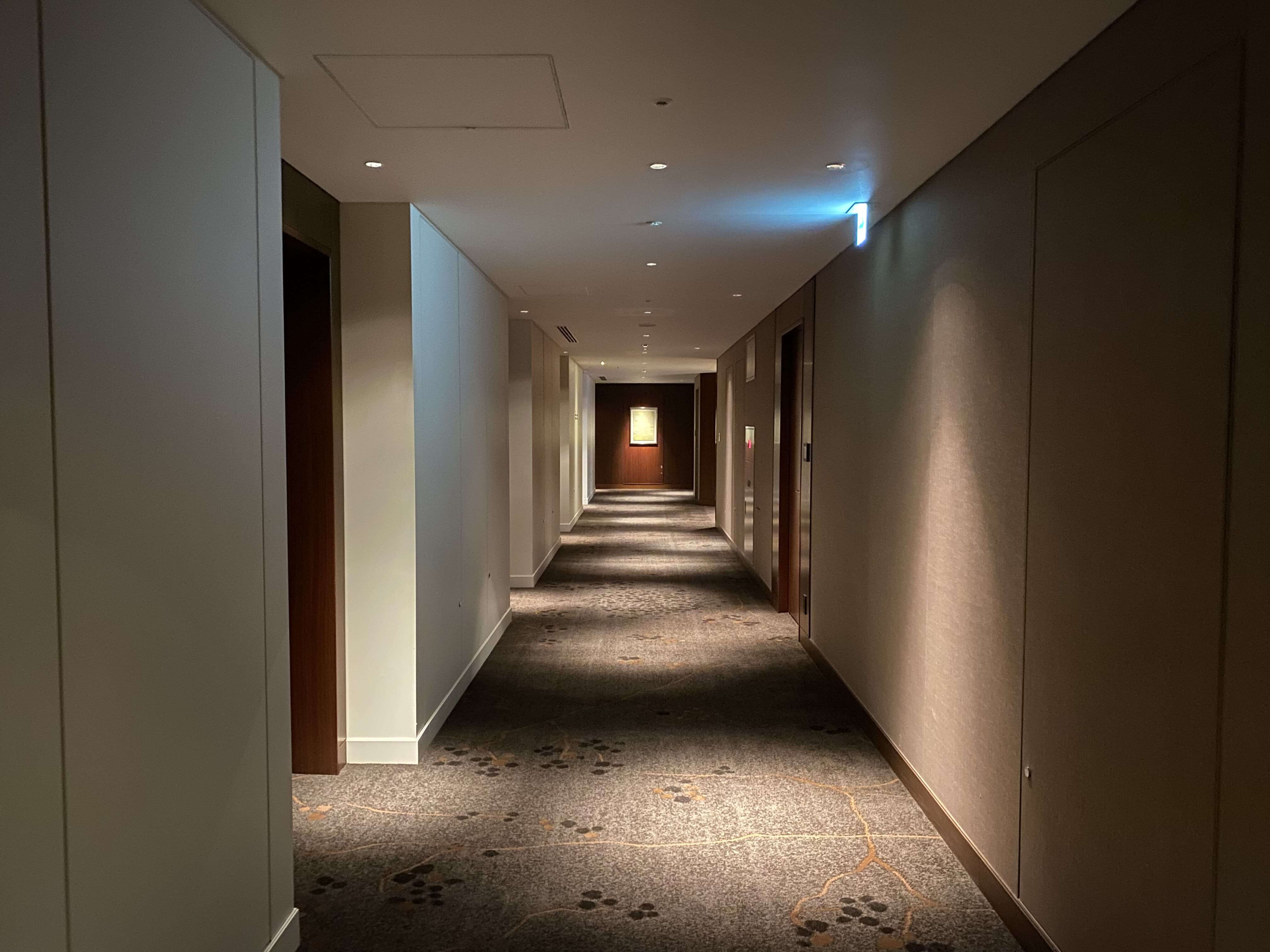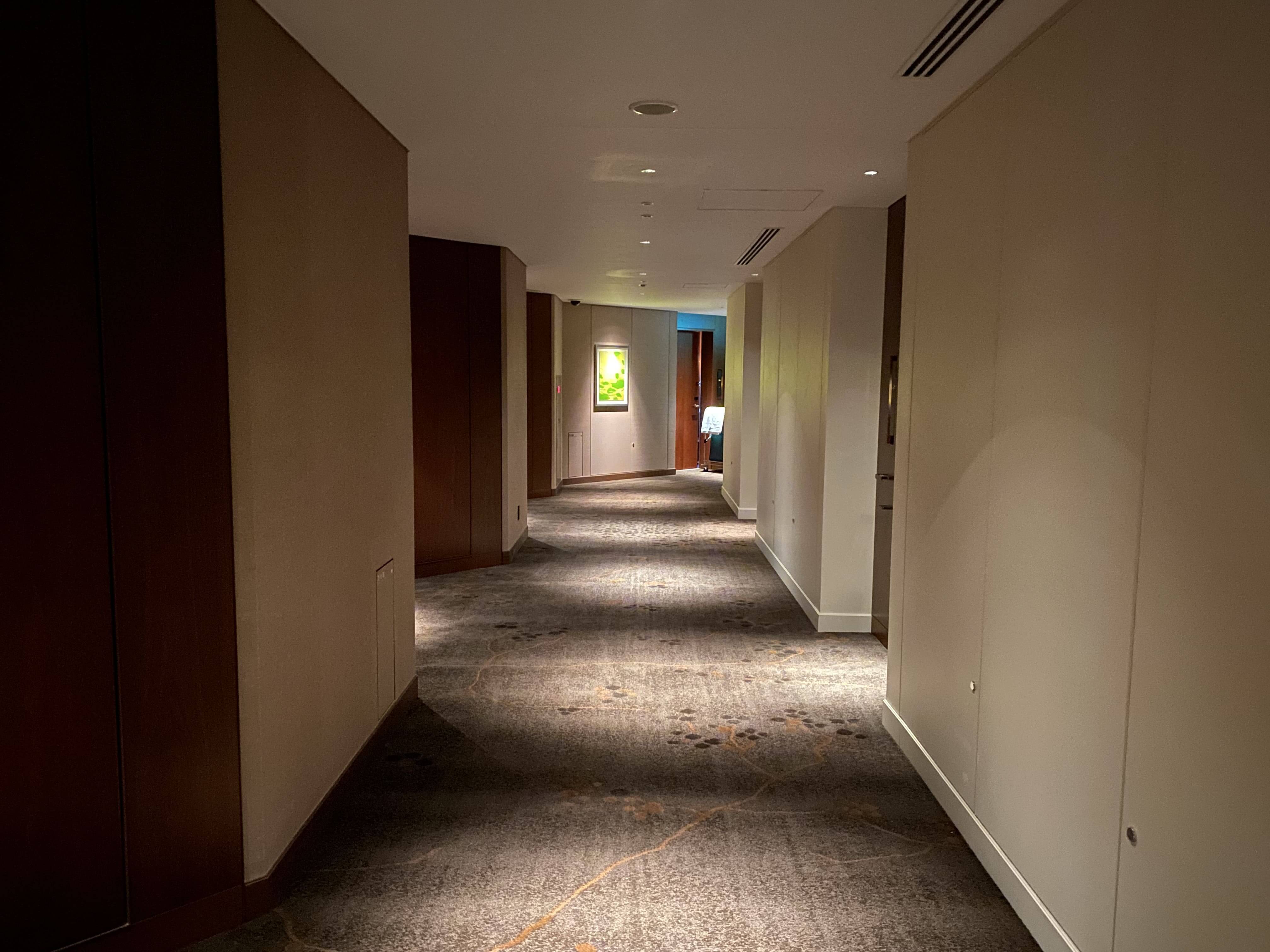 これまで5つ星ホテルに泊まってきて、特にランクの高いホテルは、バスソルトはあるのか、カーテンは自動か、マウスウォッシュはあるかのほかに、「廊下にどれだけこだわっているか…」と謎の基準を持っていたので、実はワクワクする瞬間。