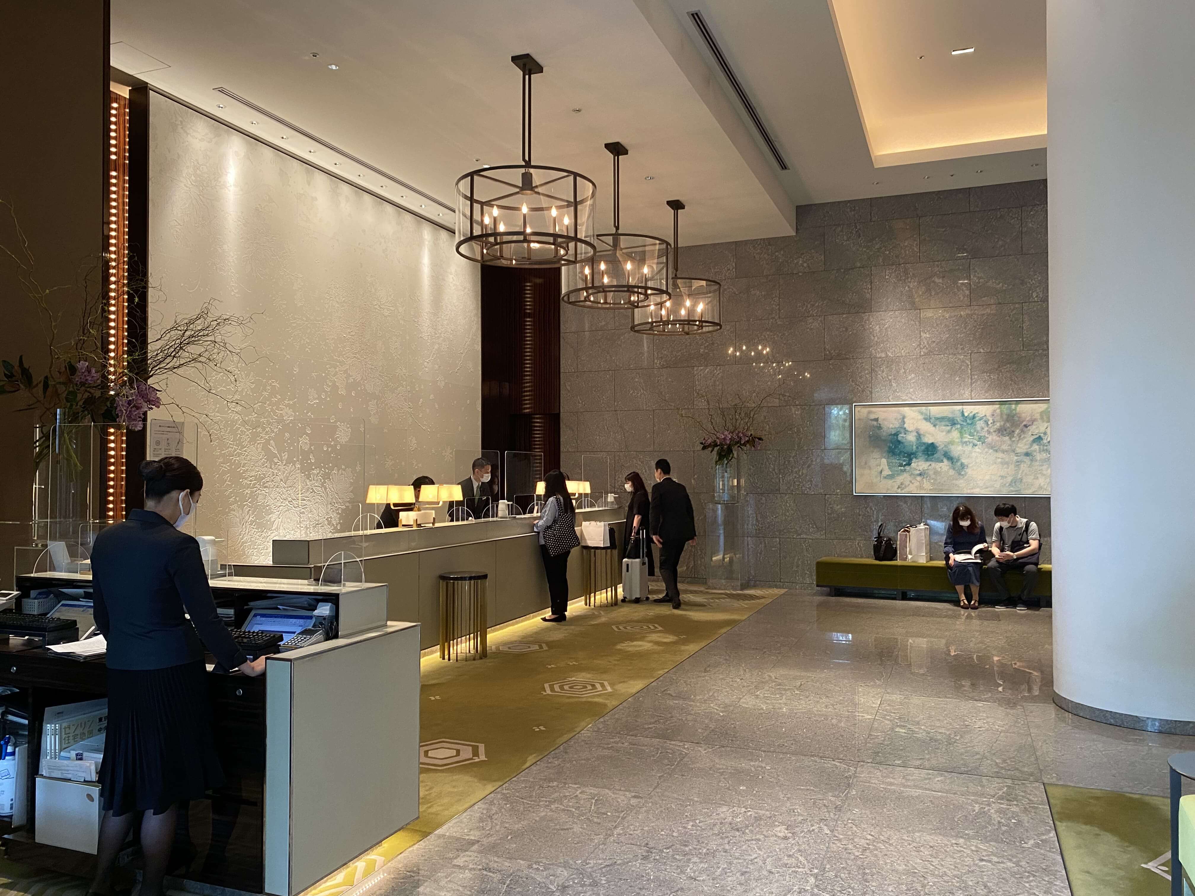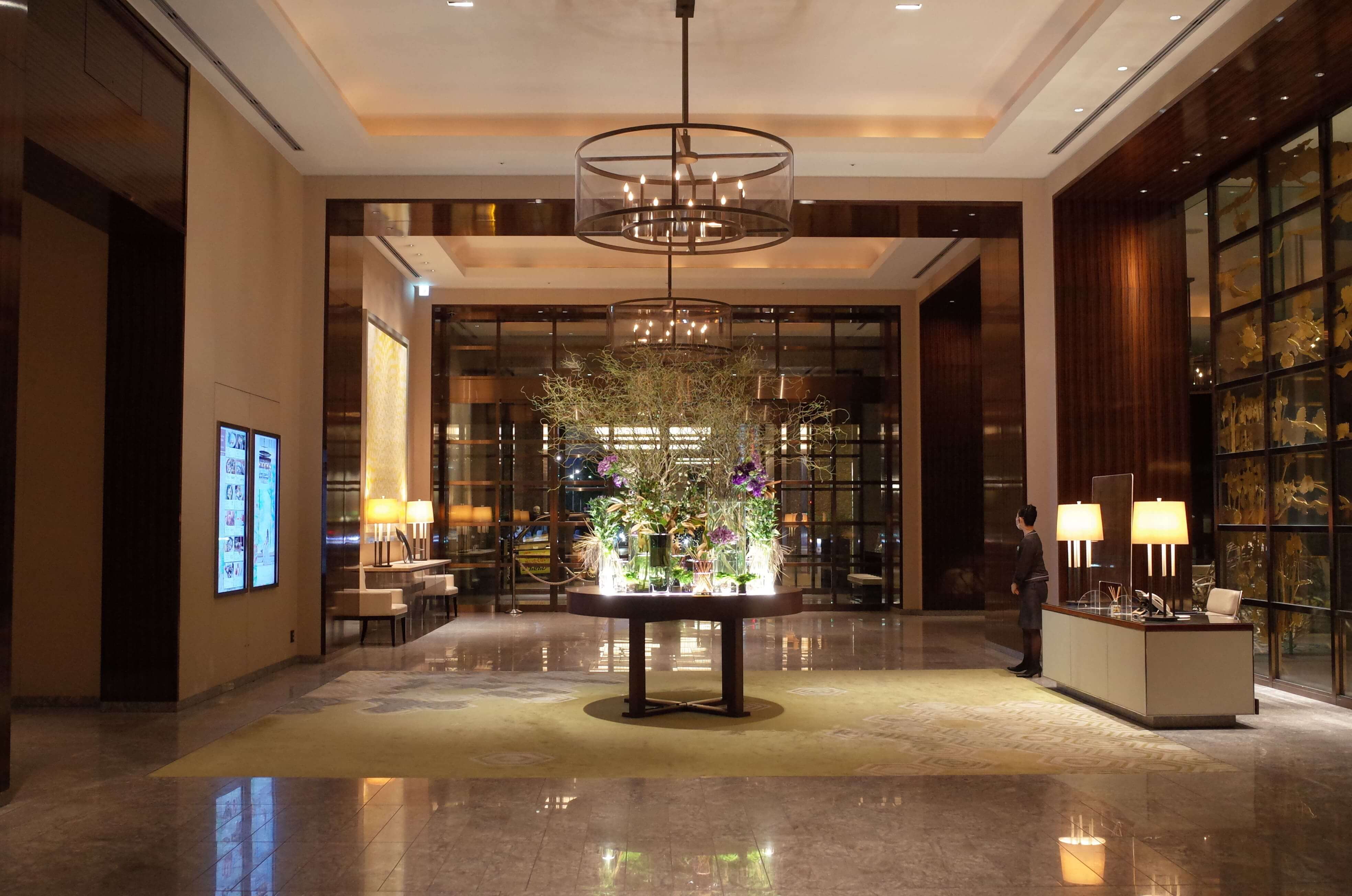 このエントランスが出迎えてくれて、レセプションに着きます。このエントランスは都内のホテルの中でも随一の高級感なので、ぜひ一度は通ってほしい…!