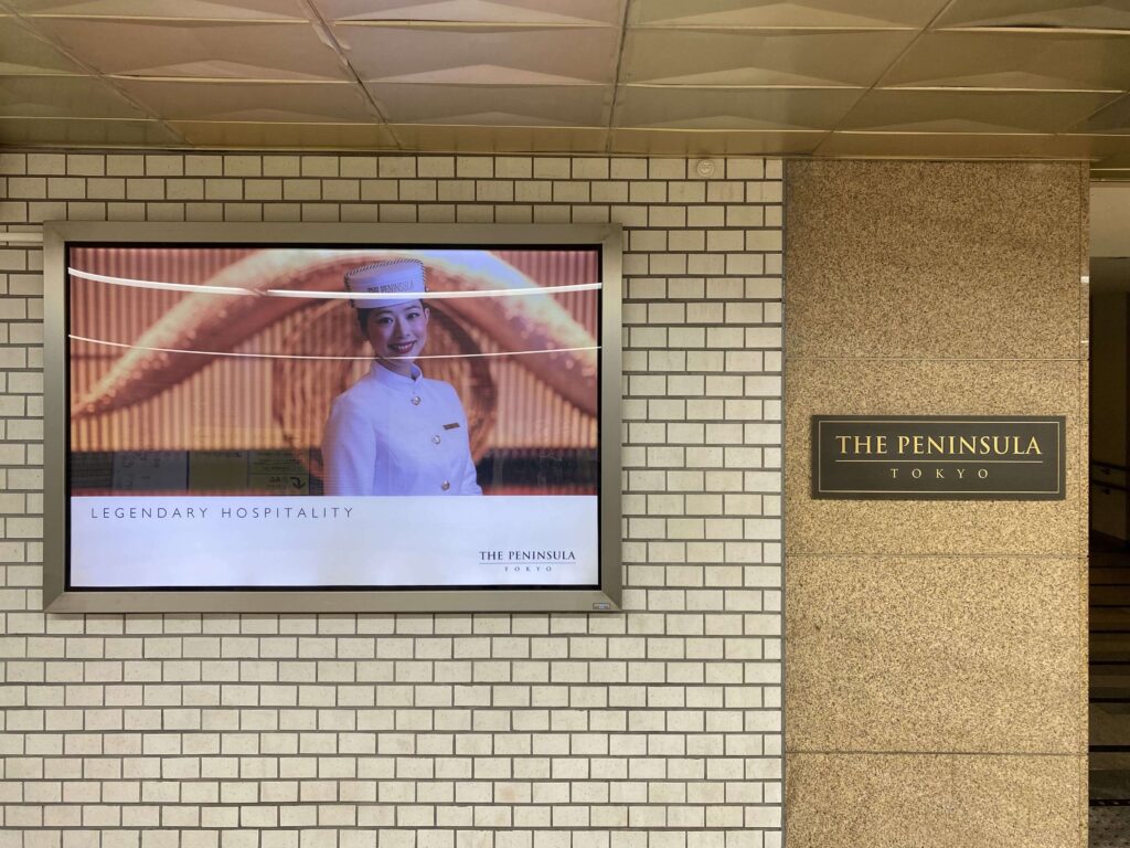 ザ・ペニンシュラ東京の看板このように、ペニンシュラの看板もしっかりとあるので、迷うことはないと思います!