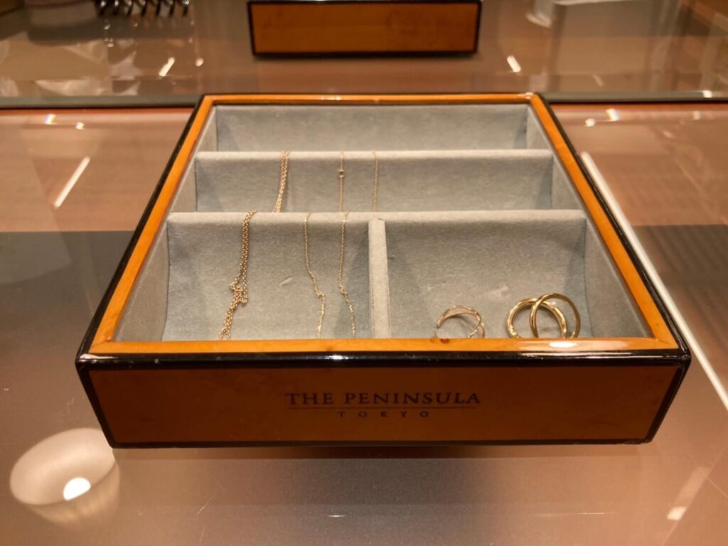 彼女がアクセサリーをいつもタオルの上に置いて保管しているので、今回はちゃんとジュエリーボックスがあって、「これはポイント高い!」って言ってました(笑)