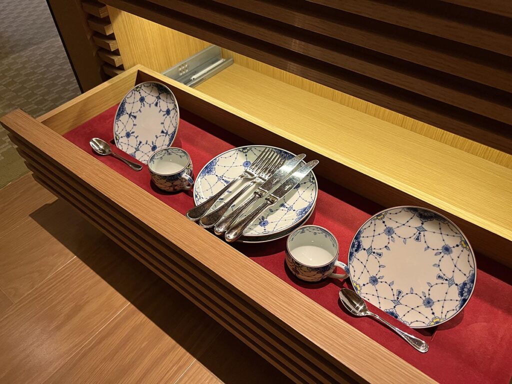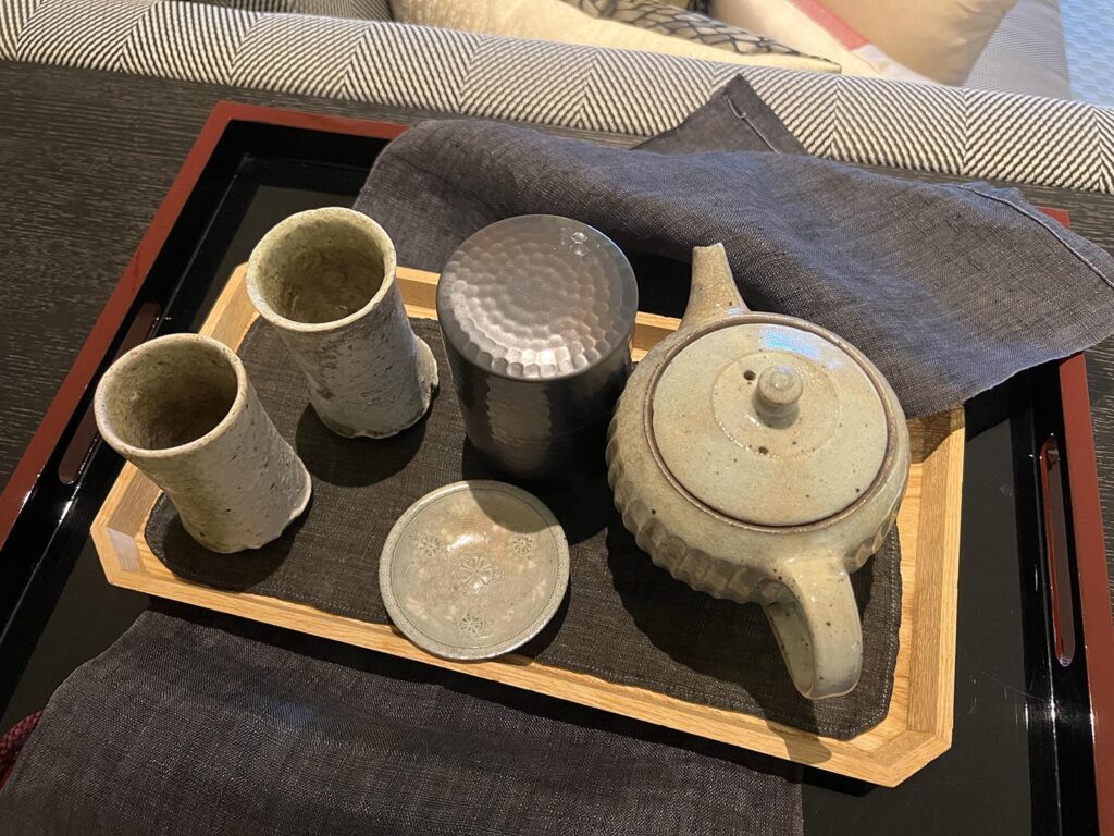 この急須とか湯呑みとかもちゃんとこだわり抜かれたものなんだろうなあなんて想像が膨らみます。高級であるほどハードの部分の説明をちゃんと受けたくなります…。