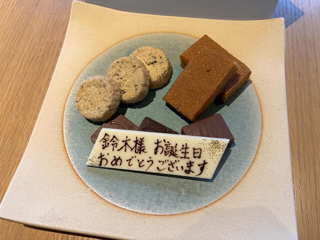 名前を入れてもらえるのはやっぱり嬉しいですよね…。誕生日でご宿泊予定の方は、ぜひ事前に誕生日の旨を連絡してみてください!