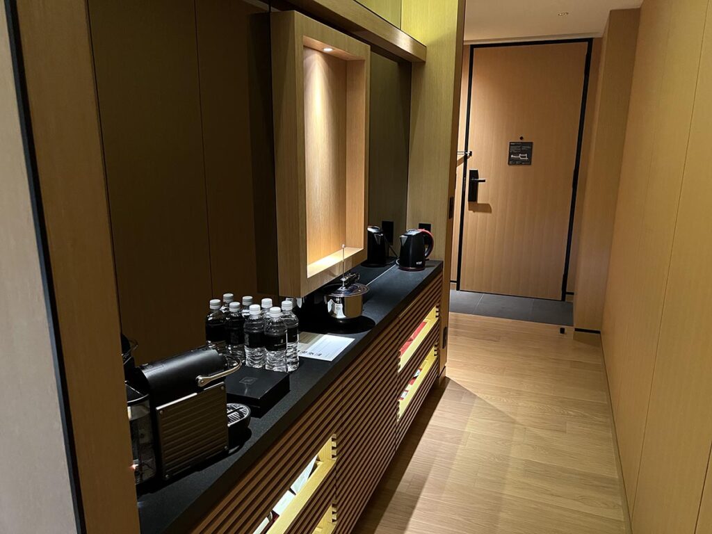 こちらがミニバー。リッツクラスだとオリジナルのドリンクがあり、京都ならあるのかな…と思ったのですが、ありませんでした…。