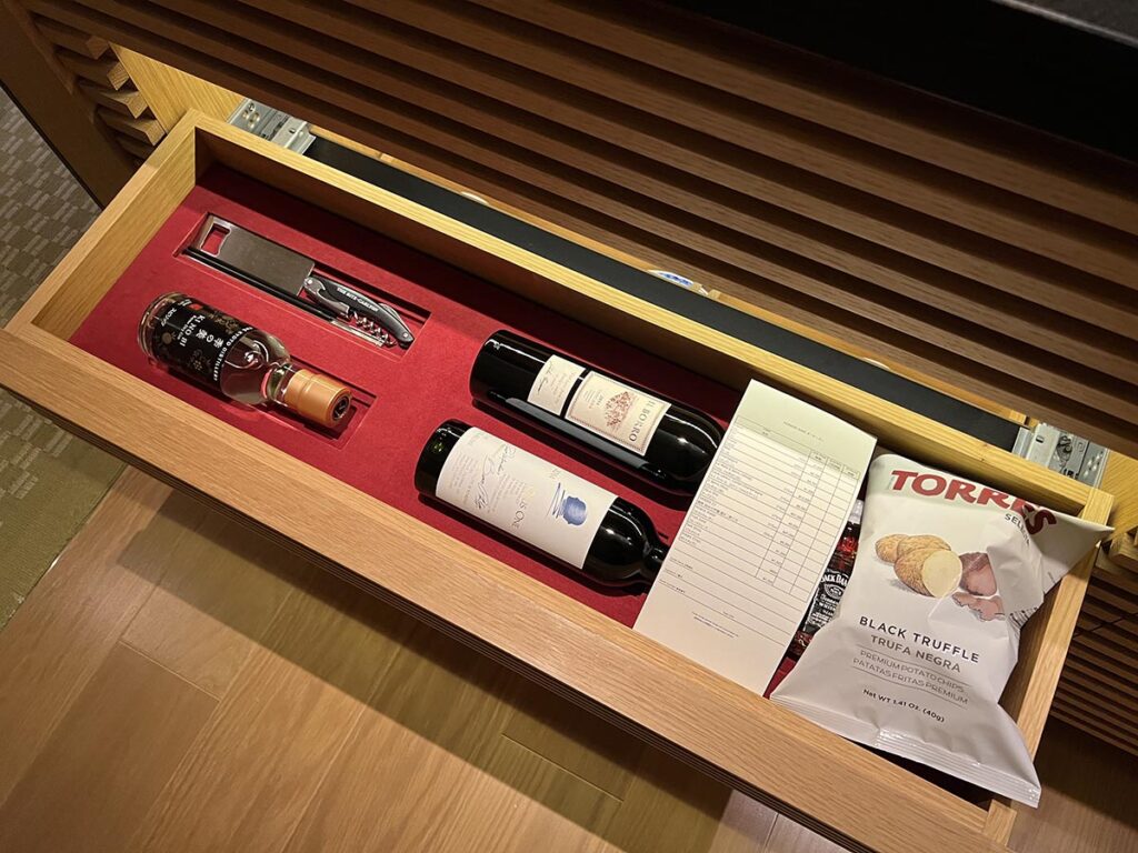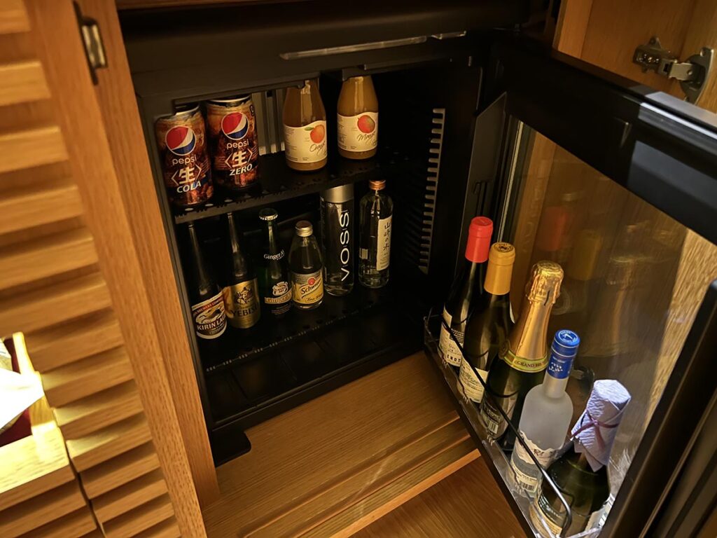まずはすぐ手前、ミニバー部分をチェックしていきましょう。