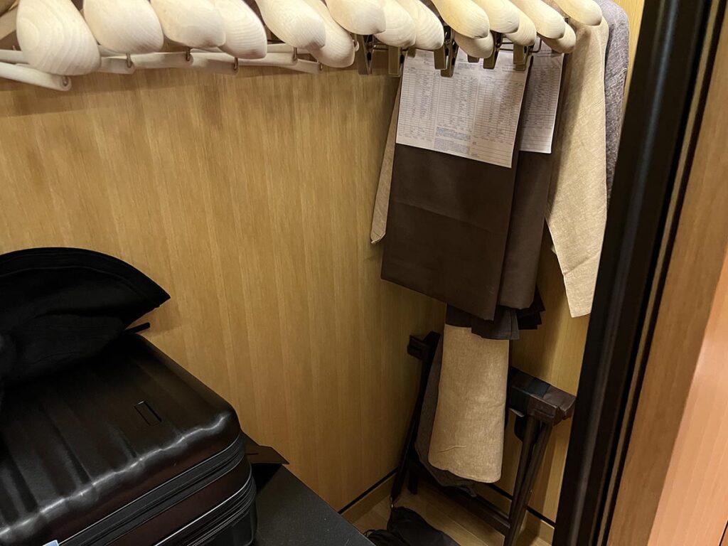 入り口部分には、クローゼットがあり、キャリーケースが入れられるサイズくらいの空間が。浴衣などもここに設置してありました。
