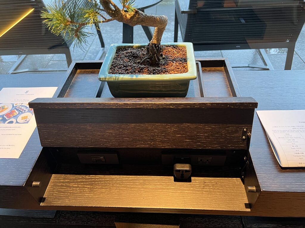 ザ・リッツ・カールトン京都にはクラブラウンジがありません(ショック…)日光やモルディブのリッツにもないし、5つ星の中でも特に高級な部類に入るホテルは、クラブラウンジがない印象です。アマンもないし。
