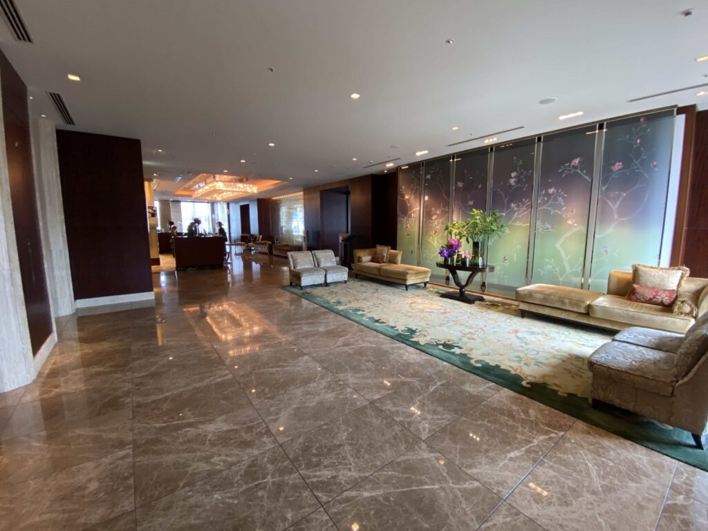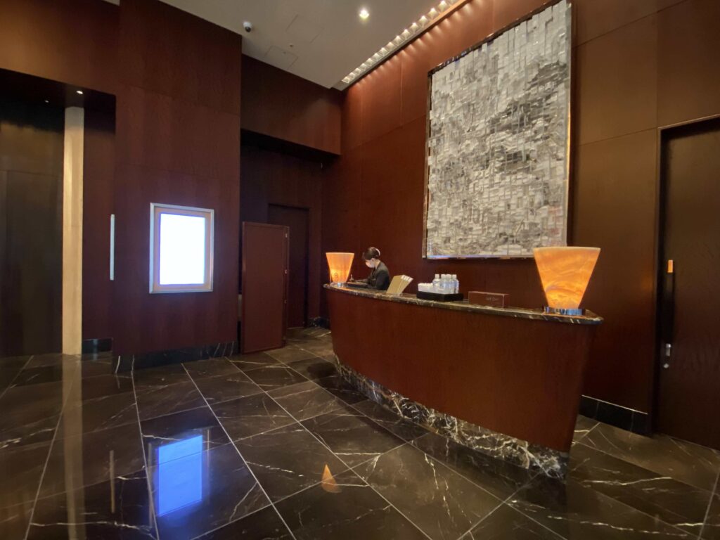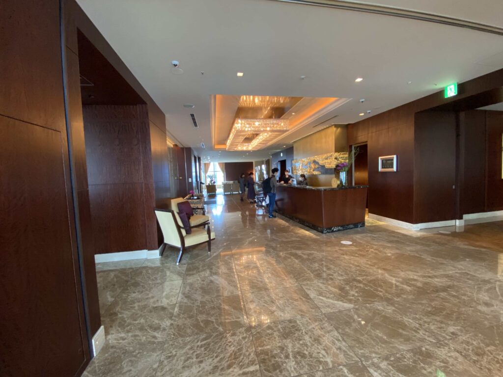 シャングリ・ラ 東京 レセプション全体エレベーターとは逆側からレセプションを見た様子。