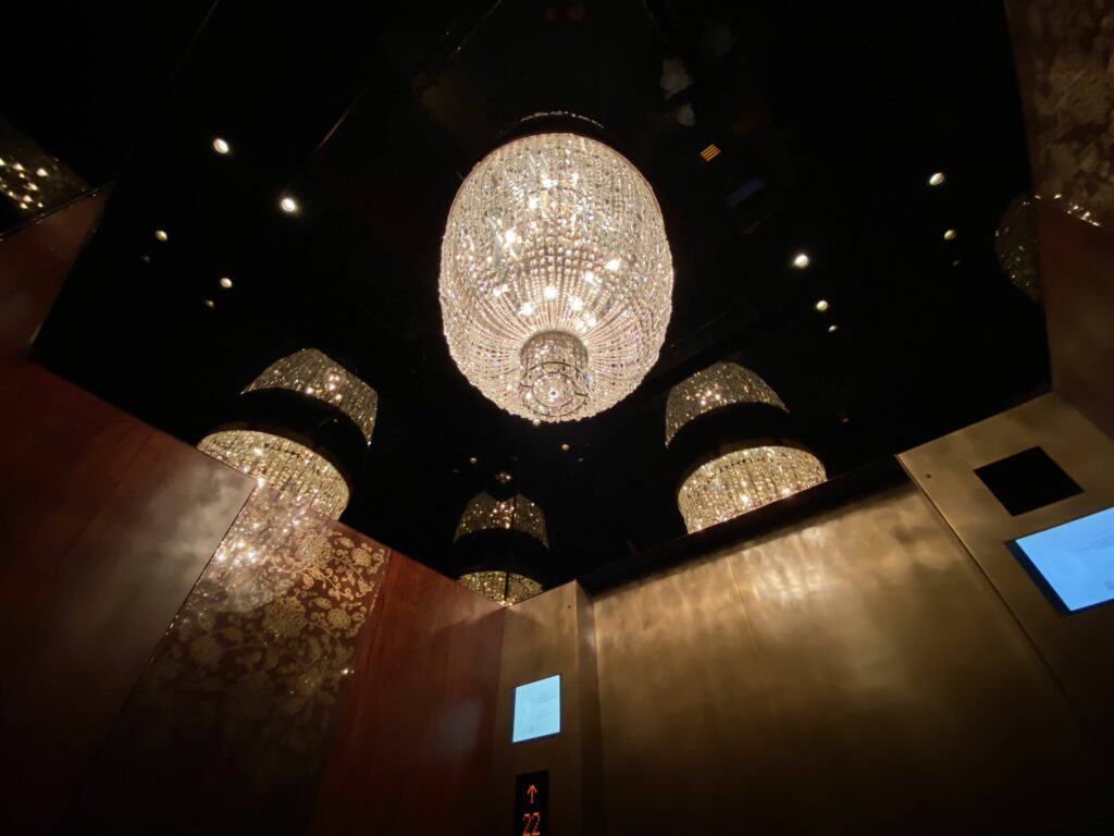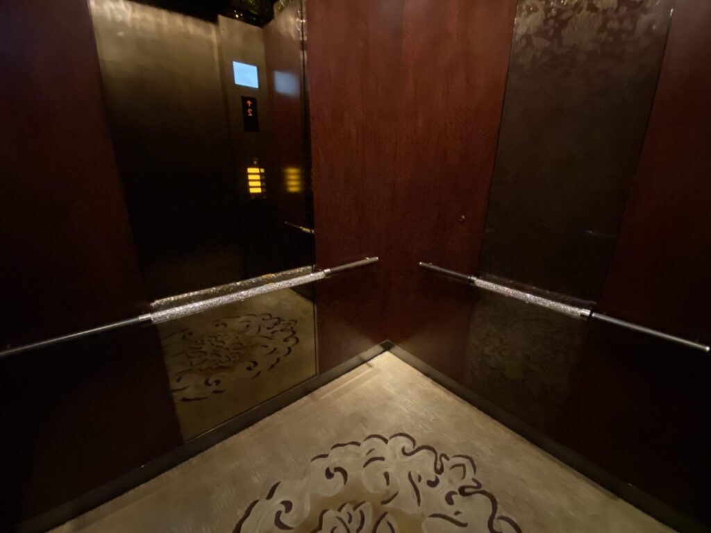 エレベーターの手すりあふれ出るギラギラ感。こういうところまでこだわっている部分からも5つ星ホテル感が醸しでてますね。