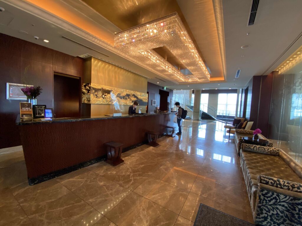 シャングリ・ラ 東京 レセプション全体 …とチェックインする僕。猫背…