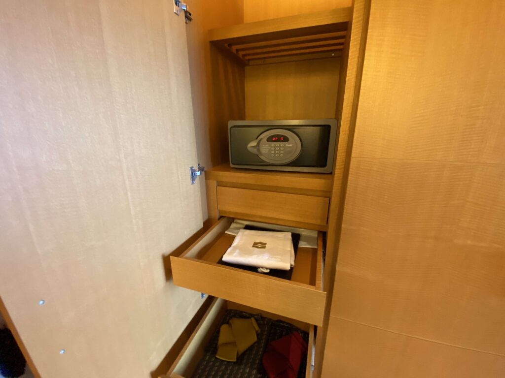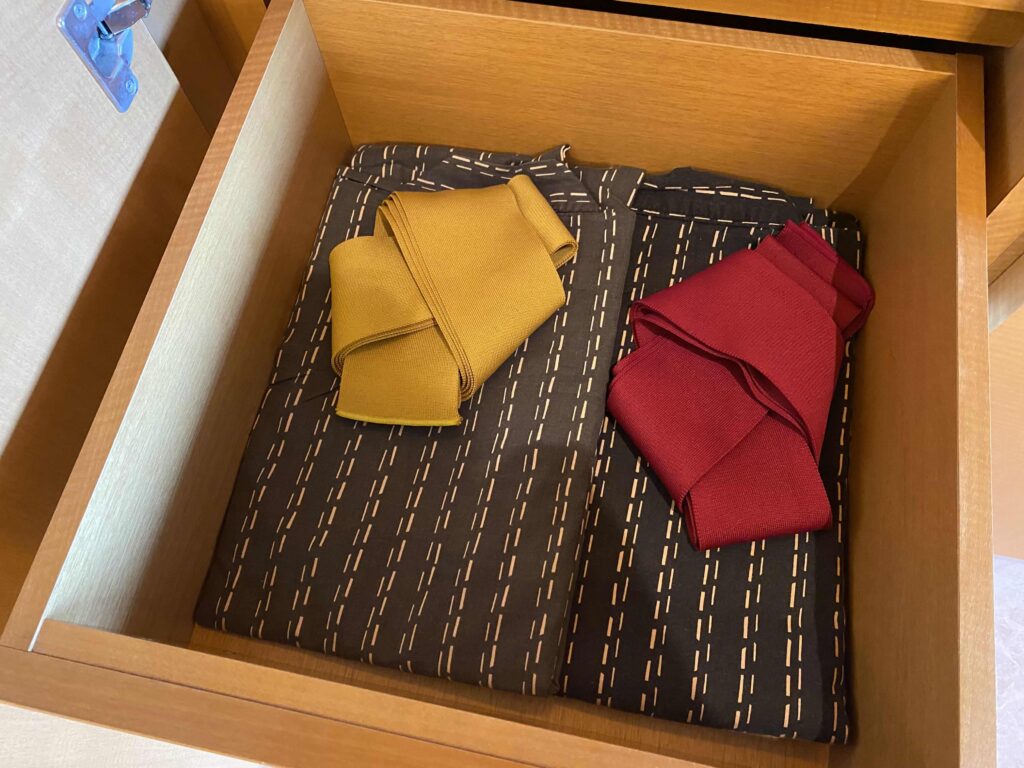 セキュリティーボックスに、安定のランドリーサービスの袋が。下には、日本らしく浴衣が!