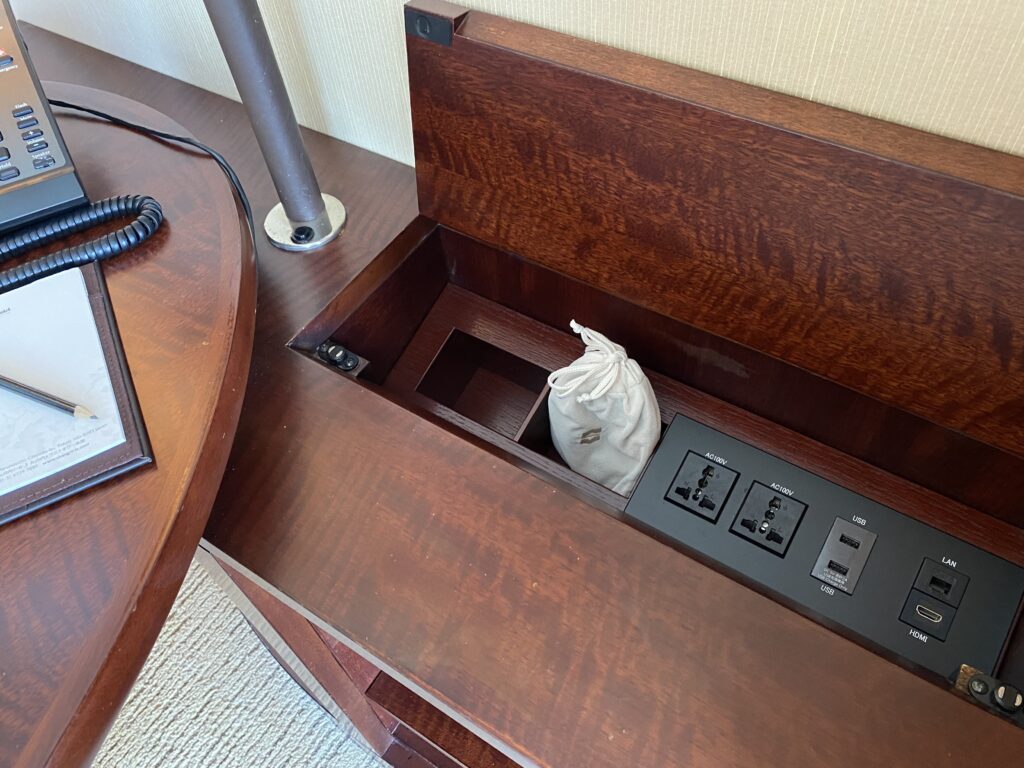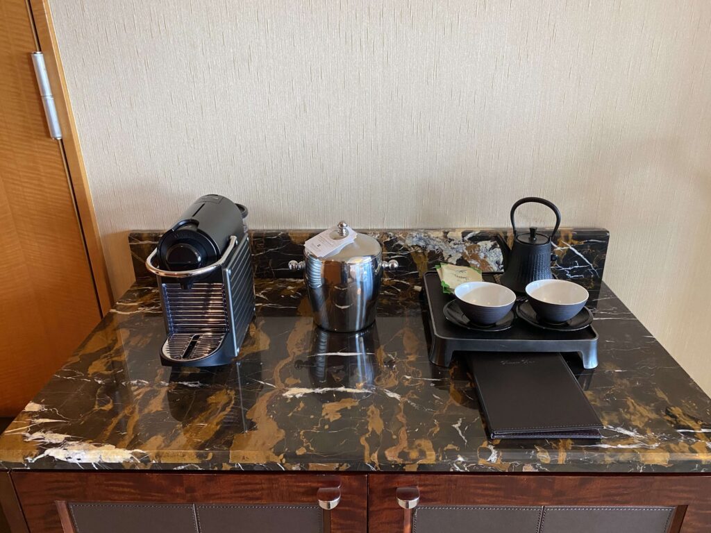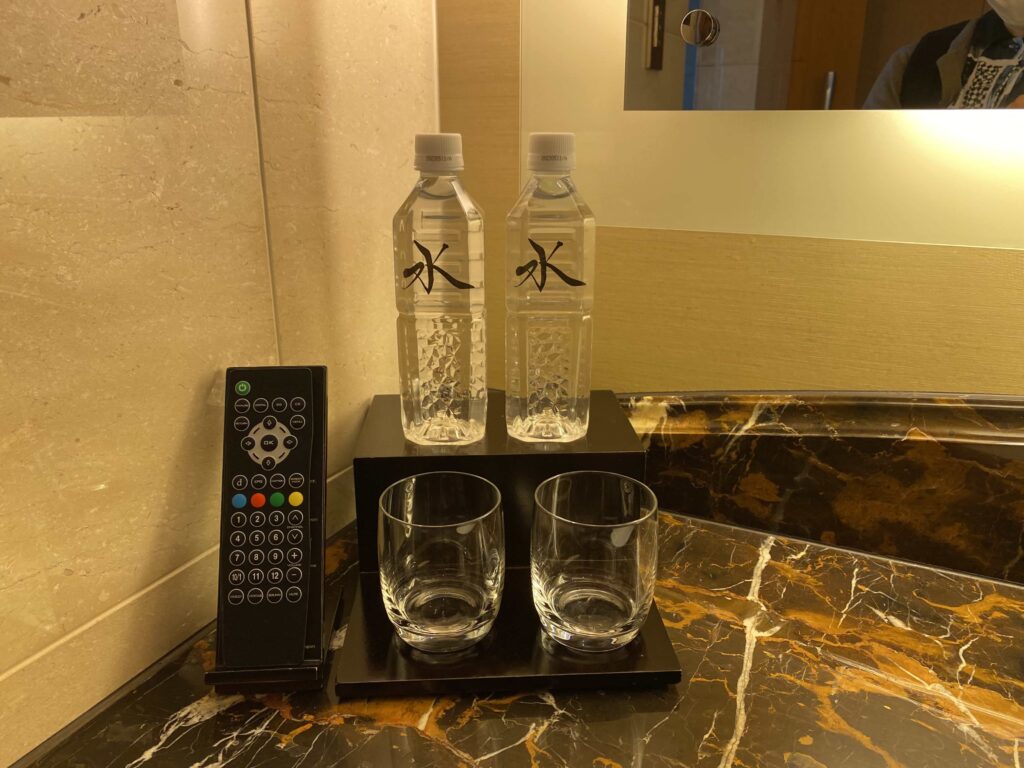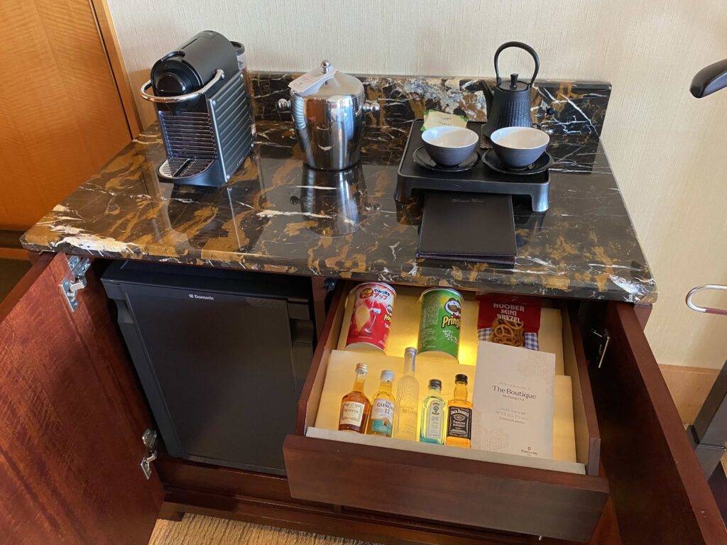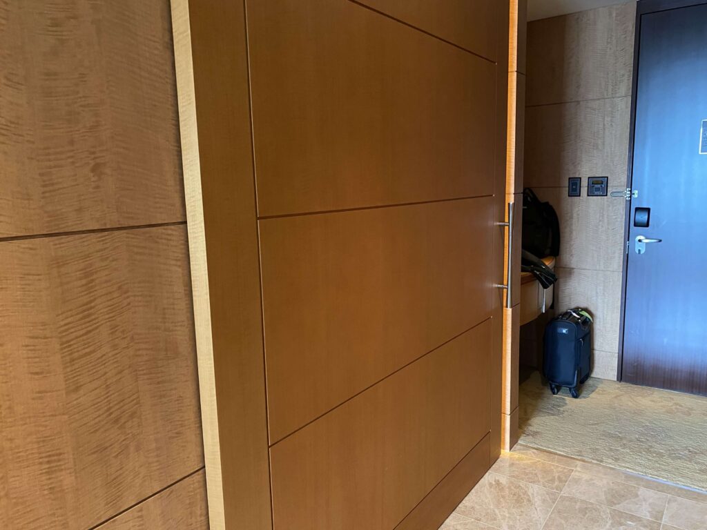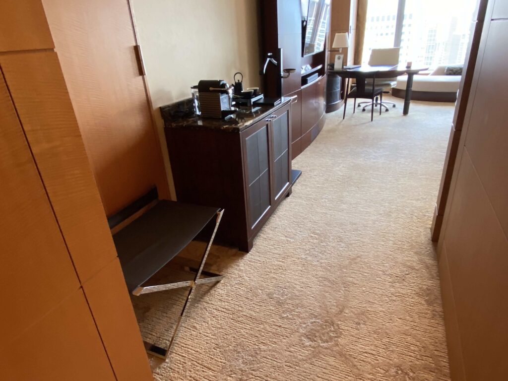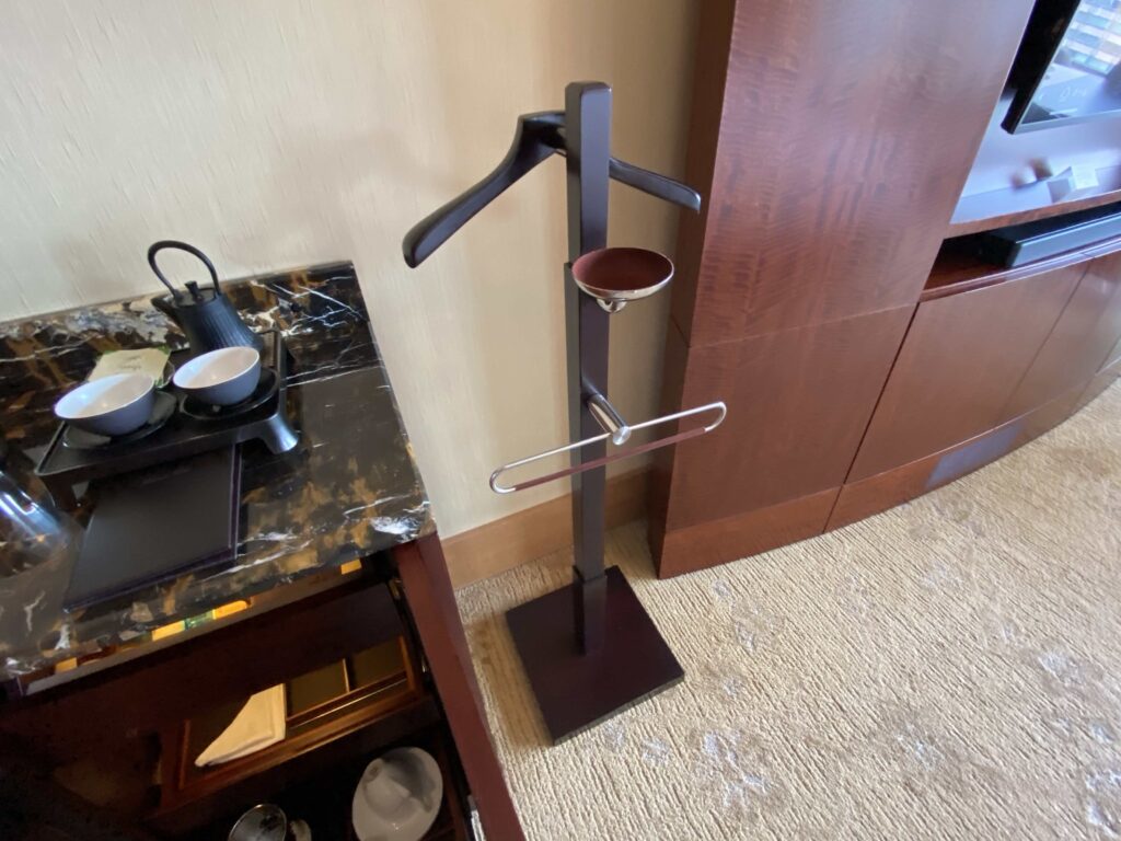 マンダリンオリエンタルはお部屋に入ってすぐだったし、グランドハイアットやパークハイアットはレセプションからお部屋までポーターの方が運んでくれたので、シャングリラのポイントはちょっと下がりました(何様)