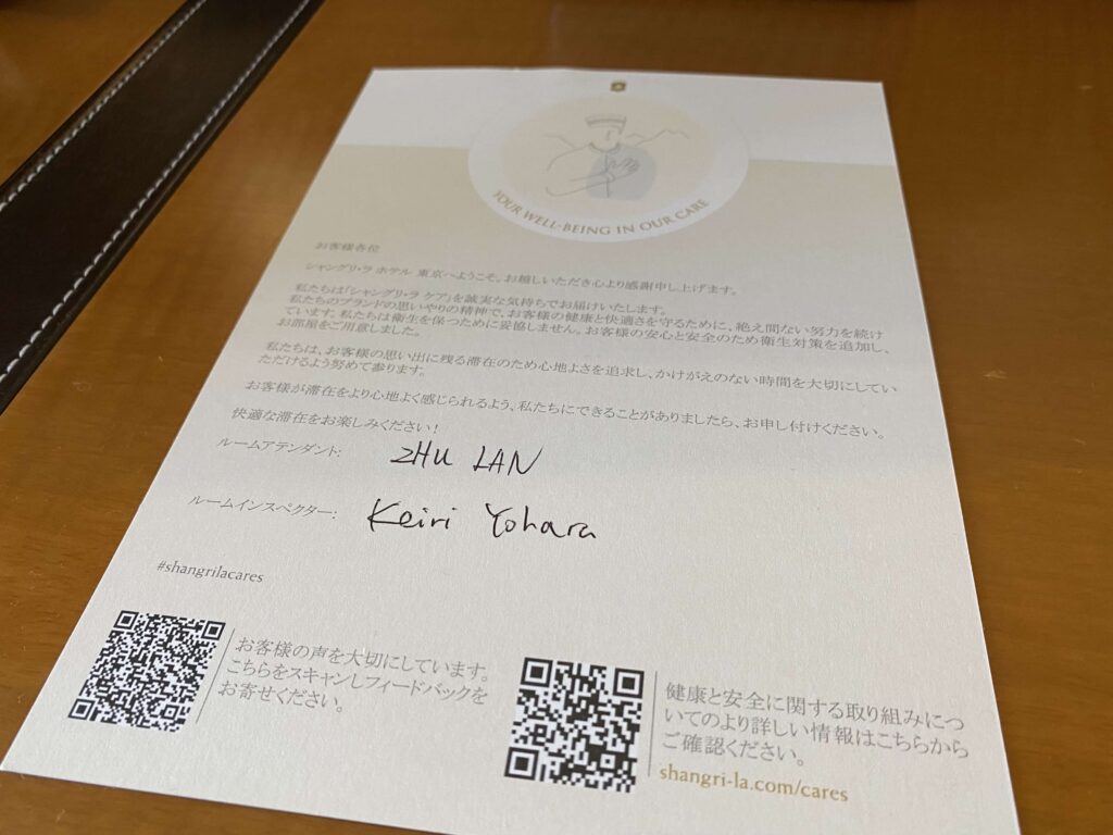 シャングリ・ラ東京はお部屋の数が200近くと抑えられていることもあってか、他のゲストともあまり会いませんでした。コロナ禍ですが、三密と全く無縁なところもやっぱりいいですよね。9時ってこともあるけど。