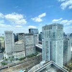 角の席で、隣にテーブルがない席に通してくださいました。眺望は東京駅方面。
