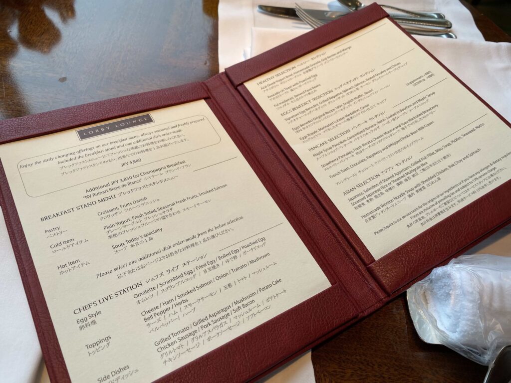 シャングリ・ラ東京 朝食メニューシャングリ・ラ東京はコロナの影響で、ビッフェ形式ではなく、注文式。メニューはとても豊富です…!迷いに迷いました。