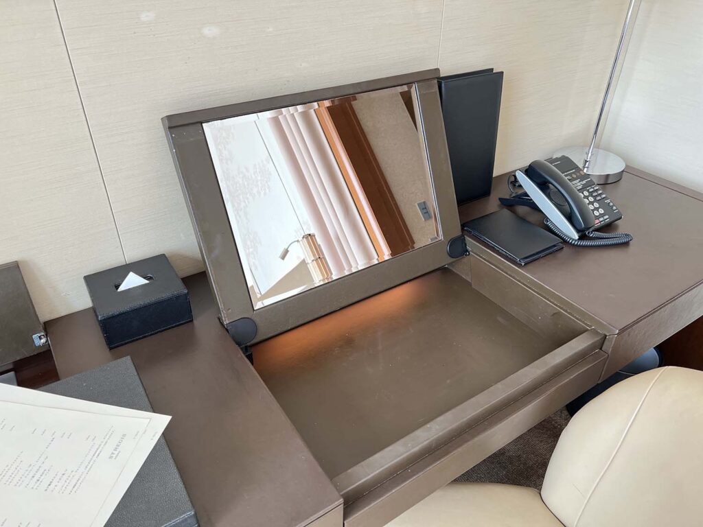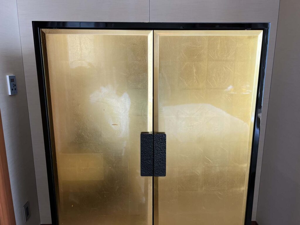 まずは手前側から。この金色の玉手箱みたいなのは(笑)、お水やミニバーが入っているボックス。ラグジュアリー和って感じですよね。
