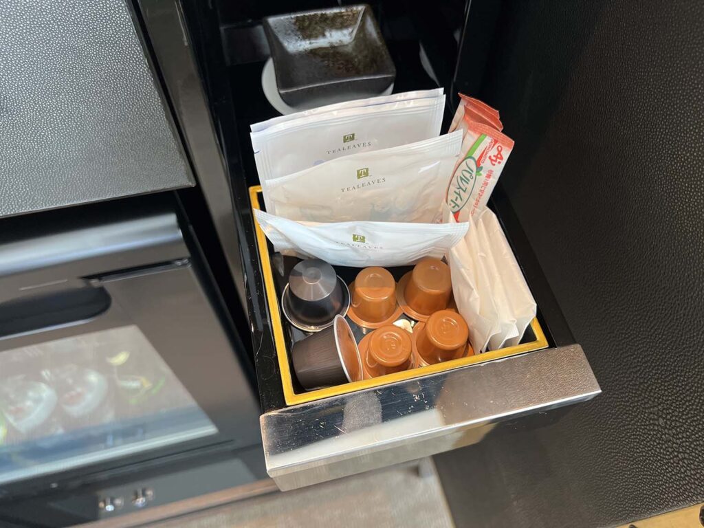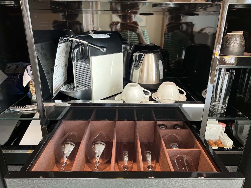 コーヒーは安定のネスプレッソ!カプセルの種類が、ホテルによって違うのが密かなホテルステイの楽しみです。ケトルや紅茶類もしっかりと揃っています。