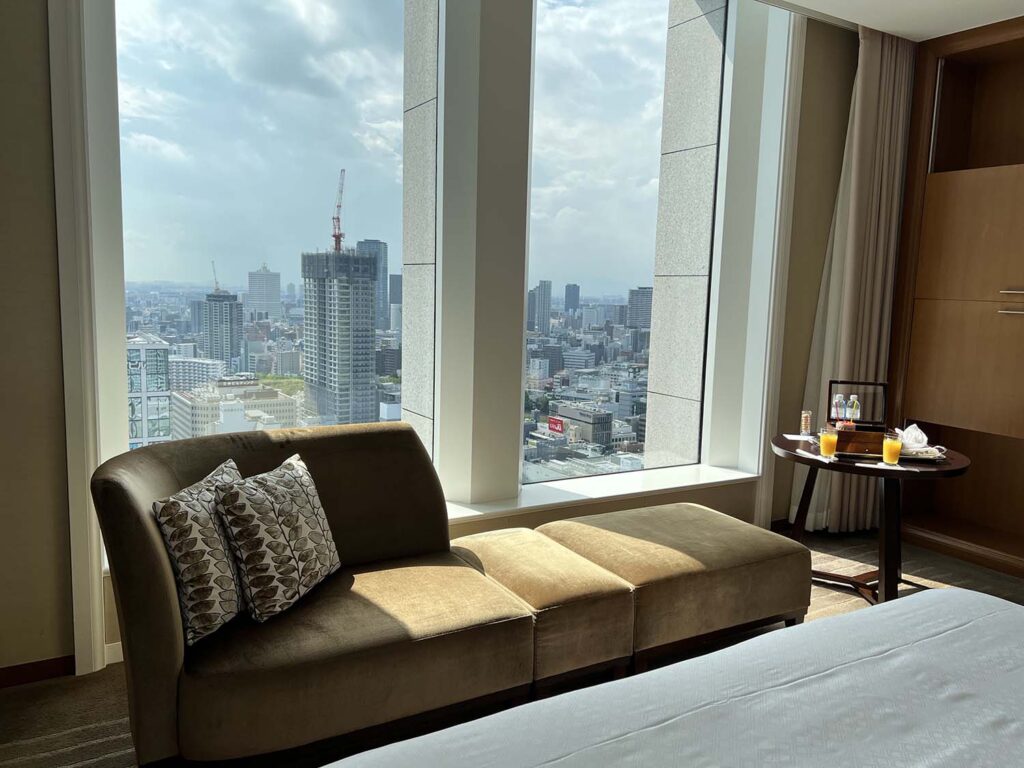 東京のホテルだと、アップグレードすると、東京タワー / スカイツリー / 富士山が見えたりするのですが、大阪だとどの眺望もおんなじで。そこまで違いを感じる要素はありません。