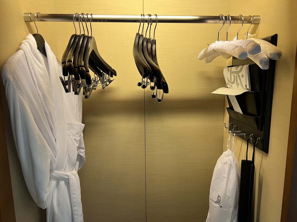 そしてすぐ横にあるのが、ハンガーラック。高級ホテル行き始めて欲しくなったものランキング1位かもしれない…。