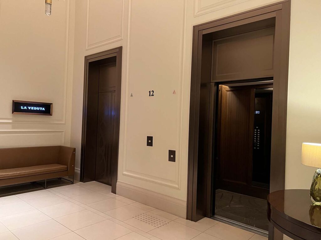 早速レセプションへ移動するためのエレベーターへ。