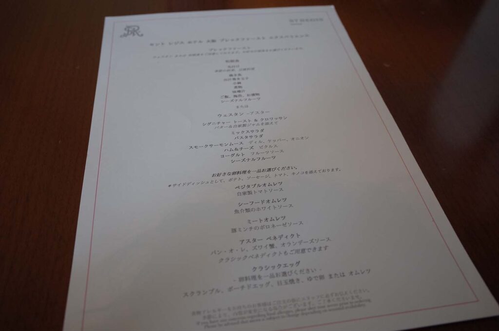 ▼セントレジス大阪の朝食は、和朝食と洋食を選ぶことができます。