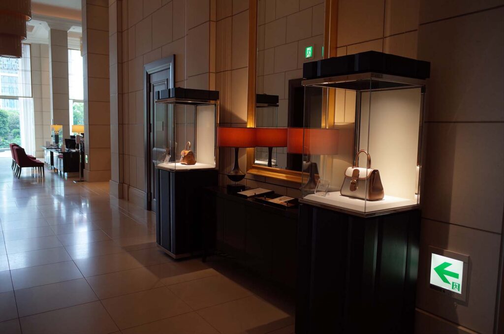 まずはレセプションのある12階へ。12階のすぐ入った部分には、以下の写真のように余るで百貨店のような展示も。すでにここの雰囲気からもセントレジスワールドが伝わってきますね。