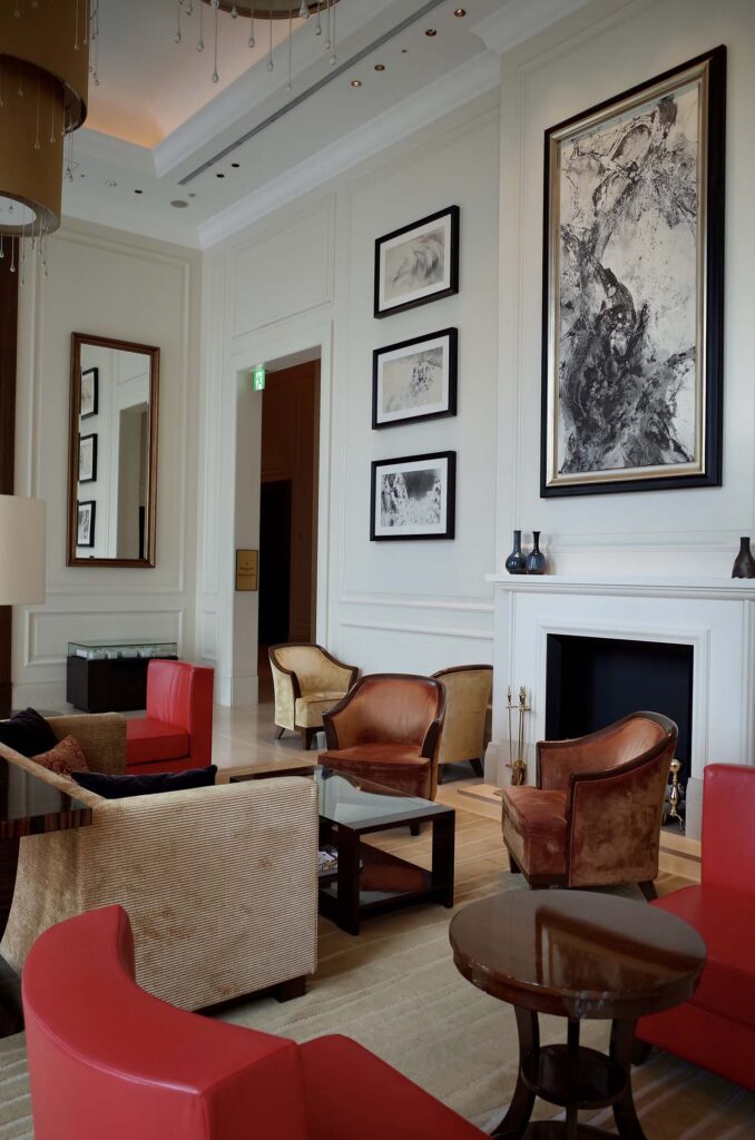 その間には、バーやこんなラグジュアリーな空間もあります。照明も派手すぎず、茶色と赤がベースとなったおしゃれ空間…。アートや鏡の配置も絶妙で、ここで暮らしたい…と思わせるほどの空間でした!
