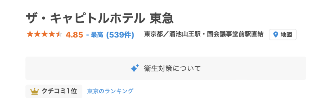 そして、このザ・キャピトルホテル 東急は何を隠そう、一休の口コミ1位のホテルなんです!(2022年2月時点)
