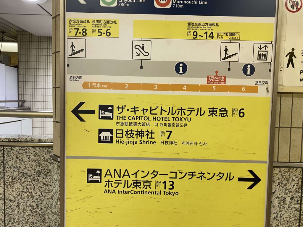 電車から降りた瞬間から、このように看板に「ザ・キャピトルホテル 東急」と記載があるので、迷うことはありません。さすが直結のホテル!