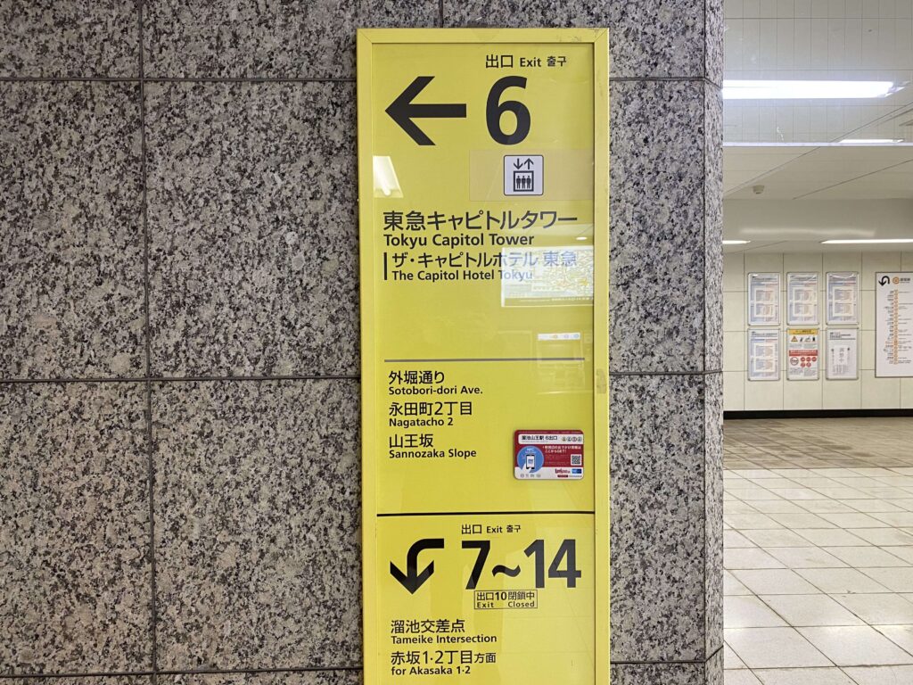 東京メトロ南北線溜池山王駅 6番出口 地下直結
