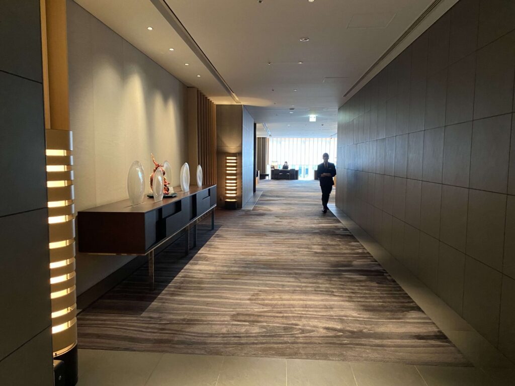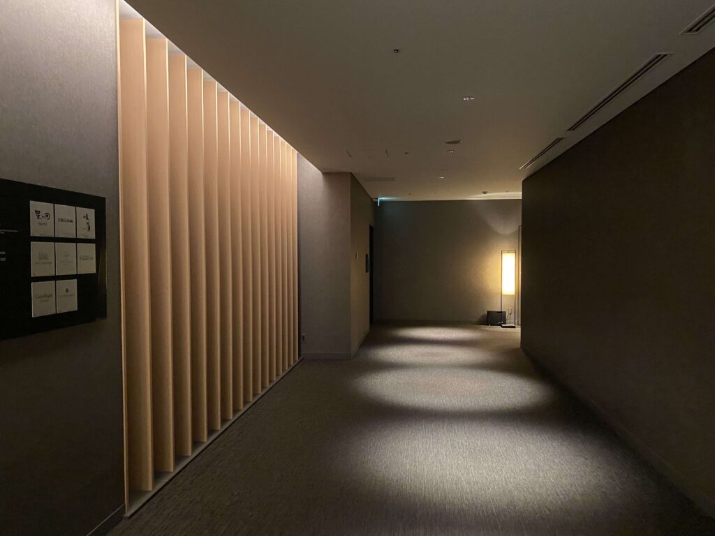 エレベーターを降りたら、この廊下を通って、レセプションへ。ここもまたライティングが美しい。