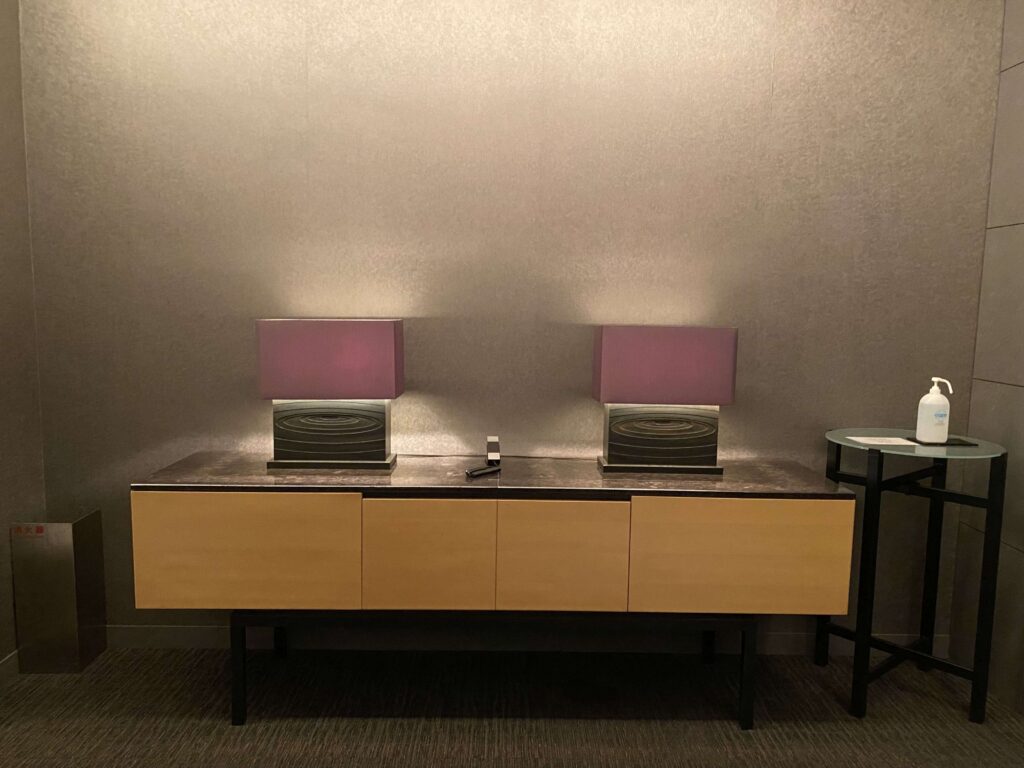 こういった電話や、ライティングもいちいち美しい。木をベースにしたデザイン、紫の和 なライティング…。もうこの時点で惚れ惚れしてしまう。高級感を象徴する、黒に紫。
