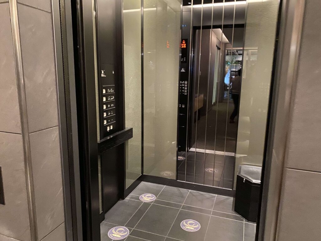 客室へのエレベーターは、レセプションフロアへのエレーベーターと同じ内装。