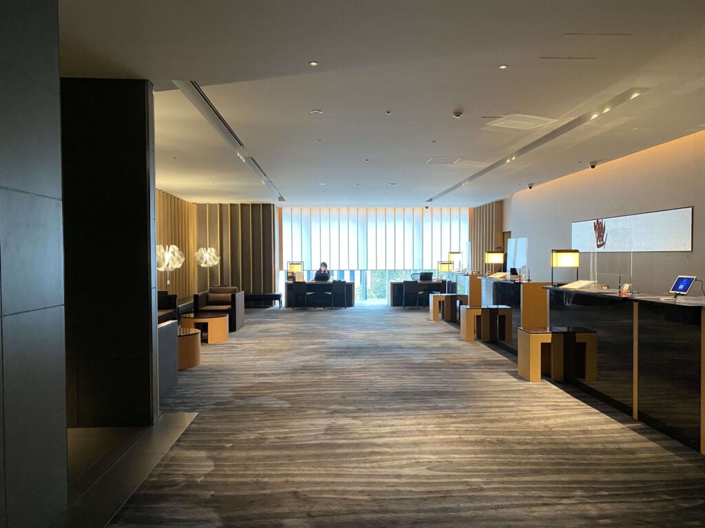 この部分は、隈研吾氏の設計ではないのですが、まるでホテル内を統一感を持たせたような装飾。木の温もりを感じて、5つ星ホテルながらも緊張することはなく、なんだかリラックスができるエントランスでした。