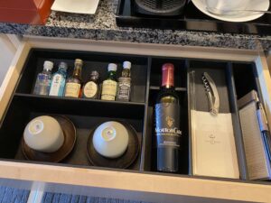 引き出しには、お酒類やジュース類が!オリジナル商品があったらトライするのですが、特になかったので、今回は無し。