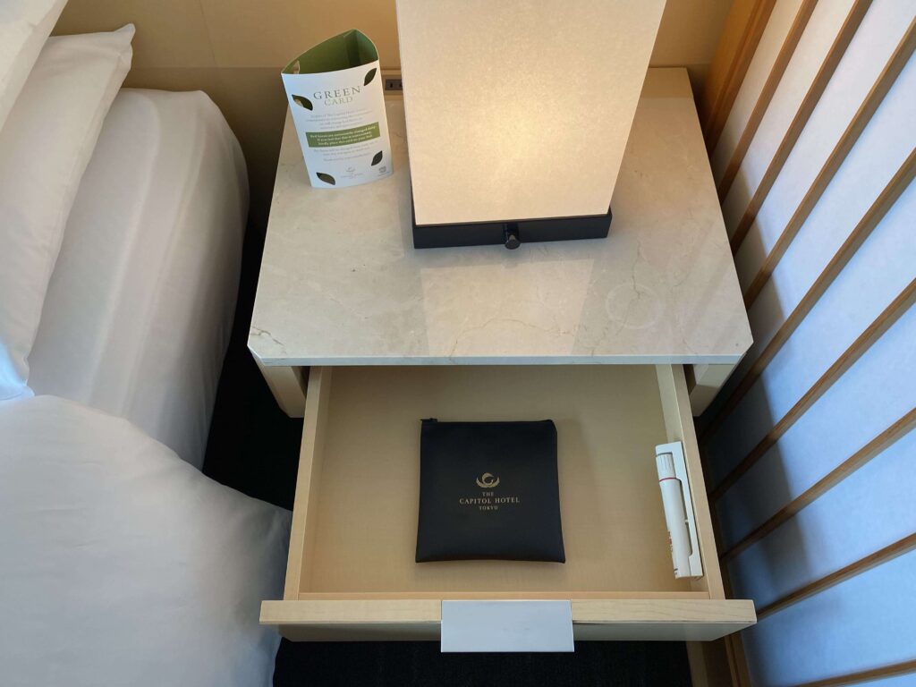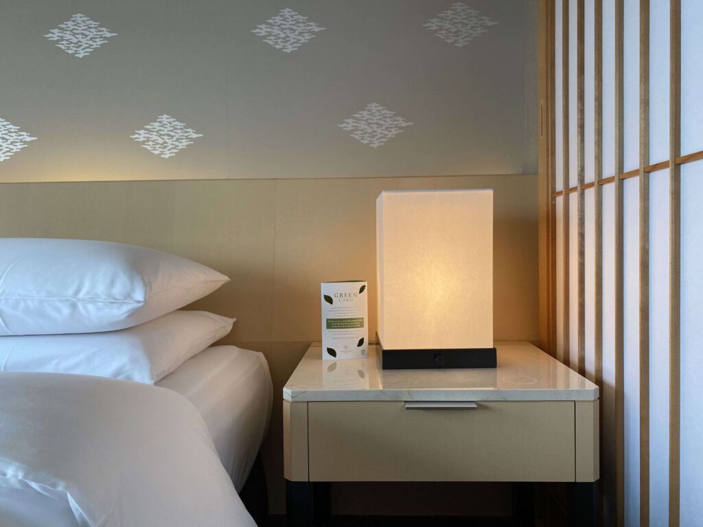 日系ならではのデザイン。とても素敵。夜も雰囲気がでるので、ぜひ全ての時間帯に楽しんでほしい。では、枕元をチェック!