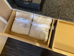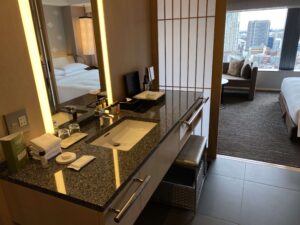 角部屋なので、2方向の風景が楽しめますし、シンクが2つ、5つ星ホテル要素がさらに加わるので、よりこのホテルを楽しめると思います!