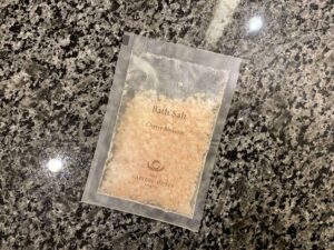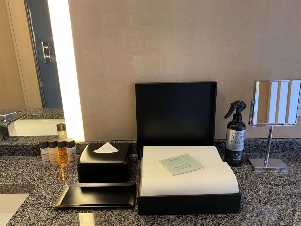 バスソルトもちゃんと配置されてありまして。バスソルトでは珍しい白濁色の色になりました。匂いも桜の匂いととてもよくて、1日の疲れが癒やされました…。このバスソルト、都内のホテルの中で一番お気に入りかもしれない。