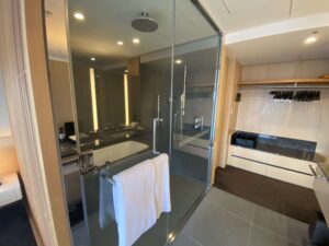 可動式とレインシャワーどちらも備えつけがありました。いつも可動式を使うつもりが、レインシャワーを使ってしまってひえってなるのですが、ここのホテルはマークがわかりやすくて最高でした(笑)