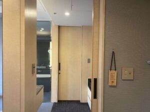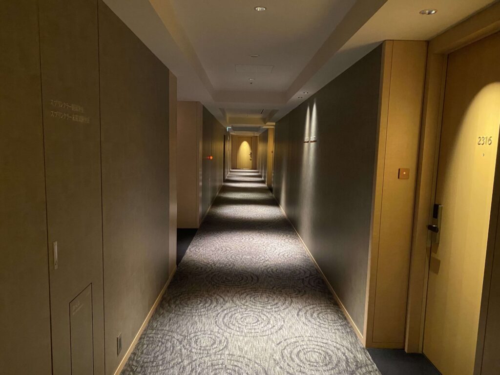 壁は、隈研吾さんを思わせる、木をふんだんに使ったデザインが際立っていますよね。廊下は、ほんとうにそのホテルの個性がでるところなので、実はしっかりと見てほしい場所。