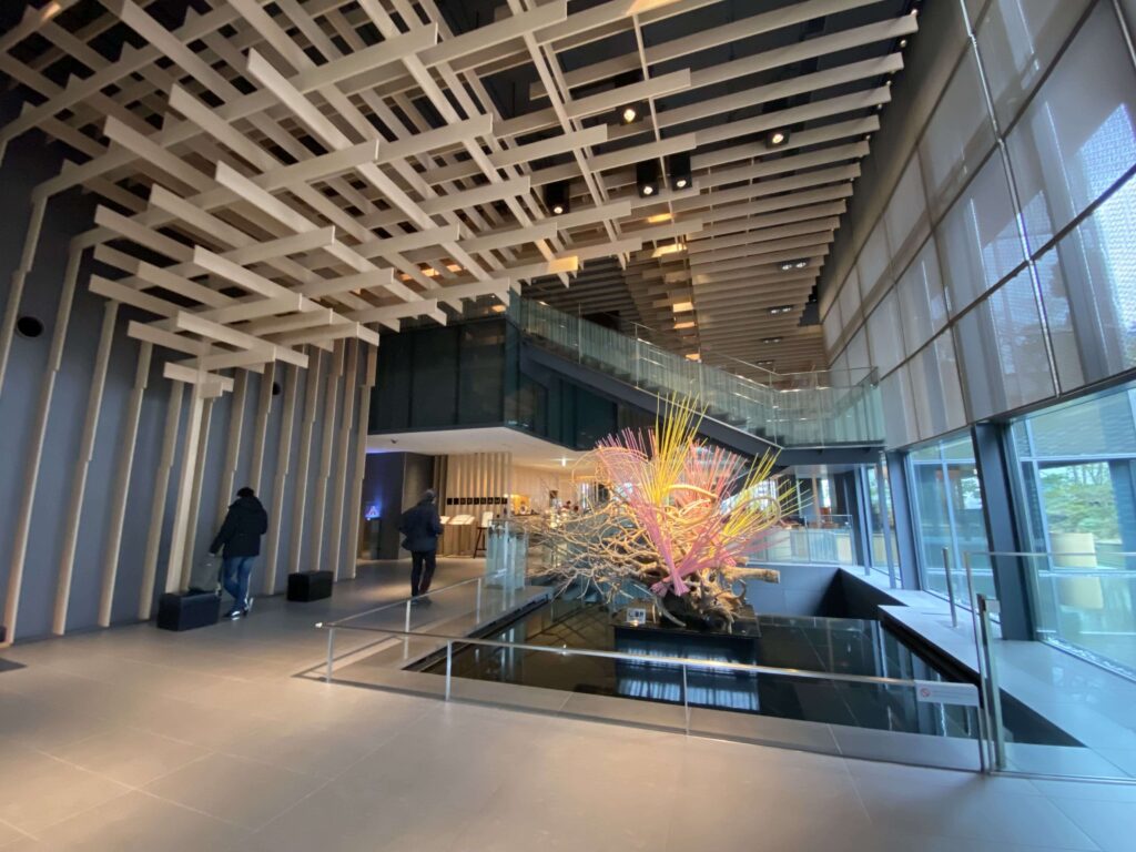 ビルの見た目は隈研吾氏設計。隈研吾氏の設計は、僕なんかがおこがましいのですが、スタイリッシュで洗練されたデザインでとても好き。なんというか、無駄のものを省いて省いて、必要なものを残した美しさというか。引き算が最高に上手いんだな、と素人ながらに思います。