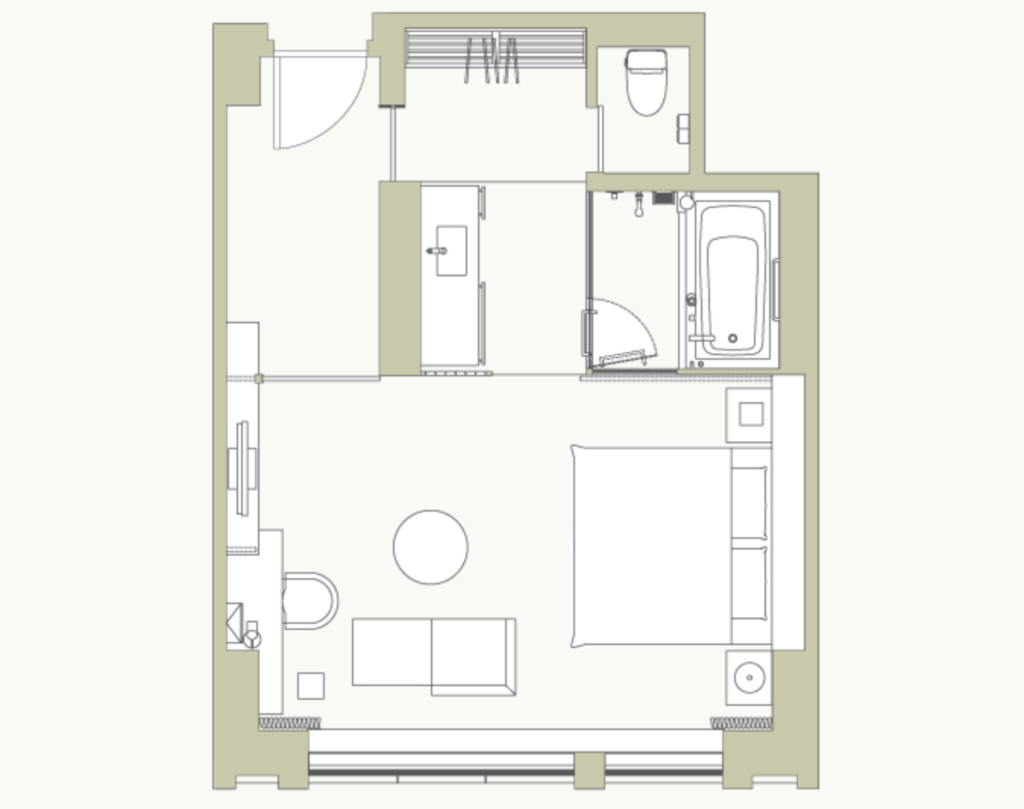 僕が泊まったお部屋のレイアウトはこんな感じ▼
