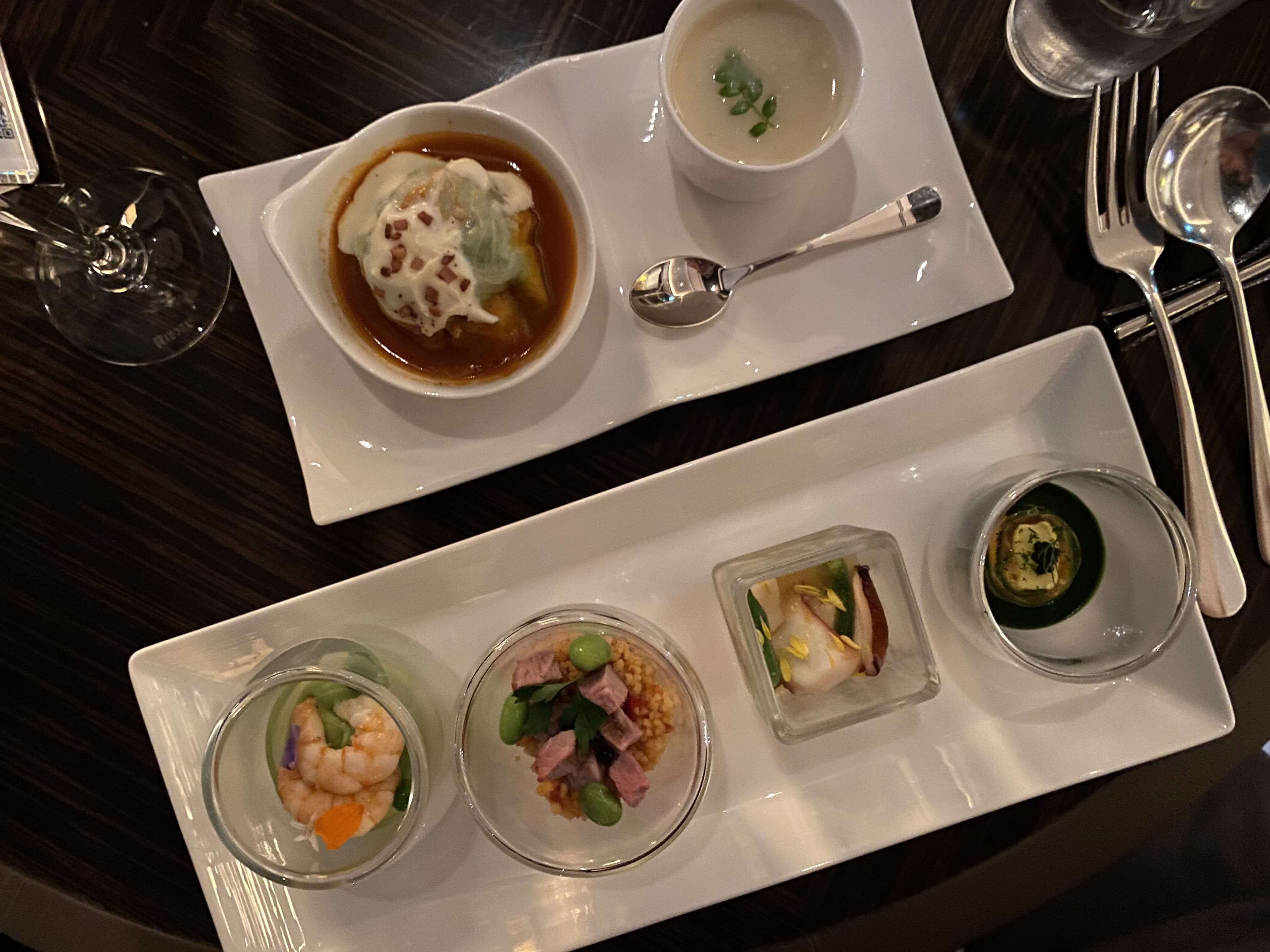 こちらでレビューさせていただきますね。以下がディナーのフードプレゼンテーション!