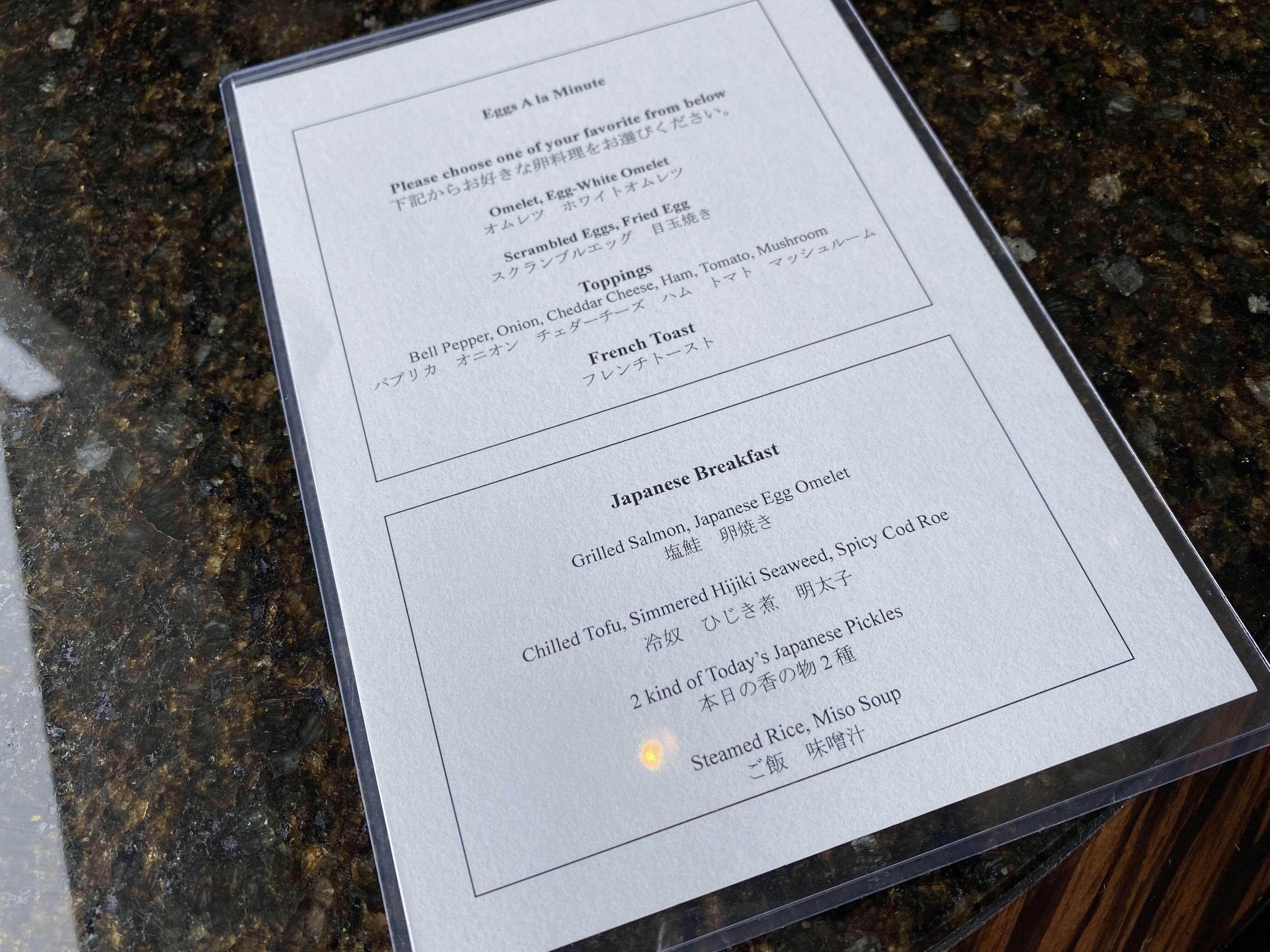1枚目の写真からは好きなものを、2枚目からは卵料理か日本食から選ぶ形。卵料理の違いがわかるほど、舌が肥えているわけではないので、日本食を選択。