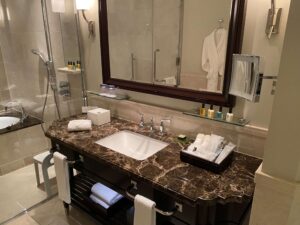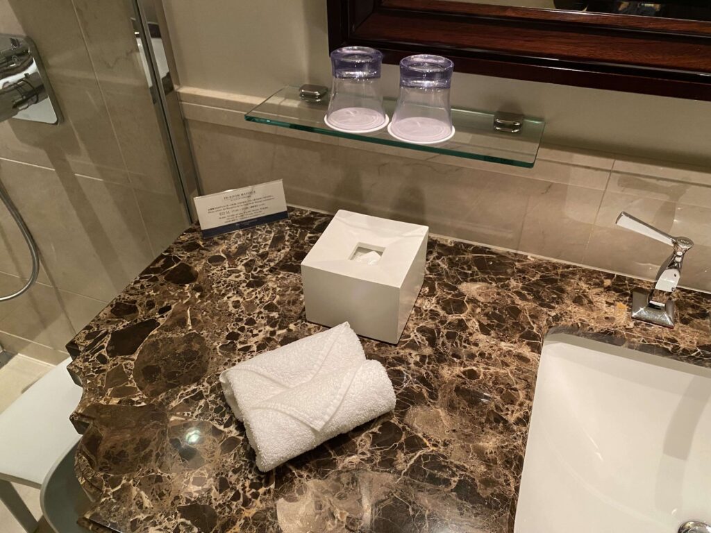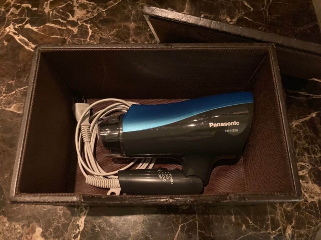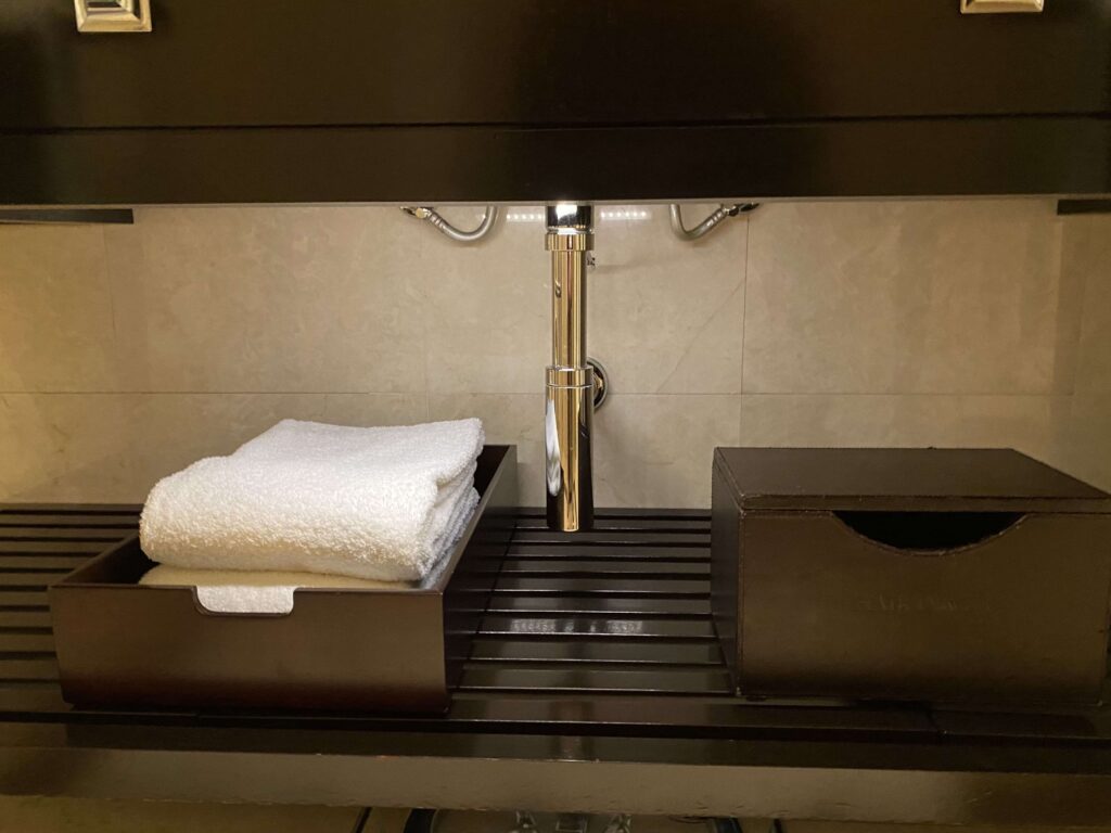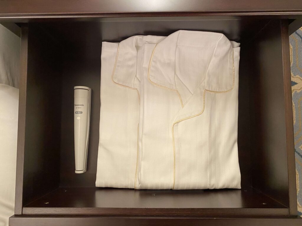 シンク下部分には、ドライヤーとタオルが設置。ドライヤーはパナソニック。レプロナイザーとかであってほしいな…とちょっと残念。日系ホテルってバスタブ周りの設備はとても整っているのですが、ドライヤーがおろそかになる印象です(いや、何様)