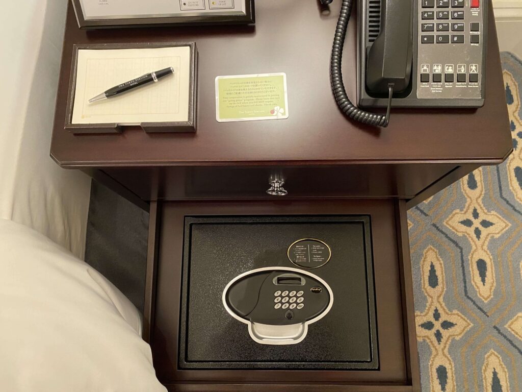 その下にはセキュリティボックス。枕元にあるのすごく好感が持てる…!