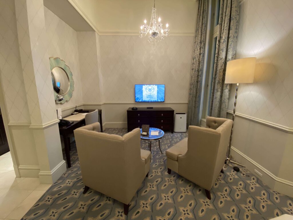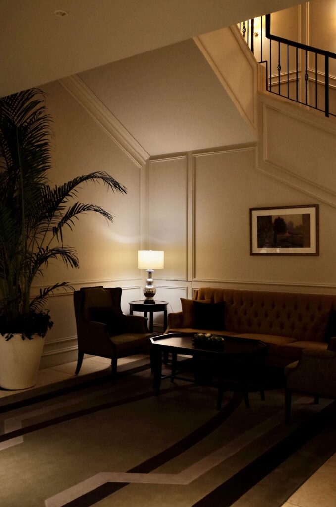 階段下のこういったエリアもめちゃくちゃによかったので、撮影。こういうところで、会話していたら、とても盛り上がりそう。当たり前ですが、全館ヨーロピアンスタイルで統一されていて、どこを切り取っても絵になる内装でした。