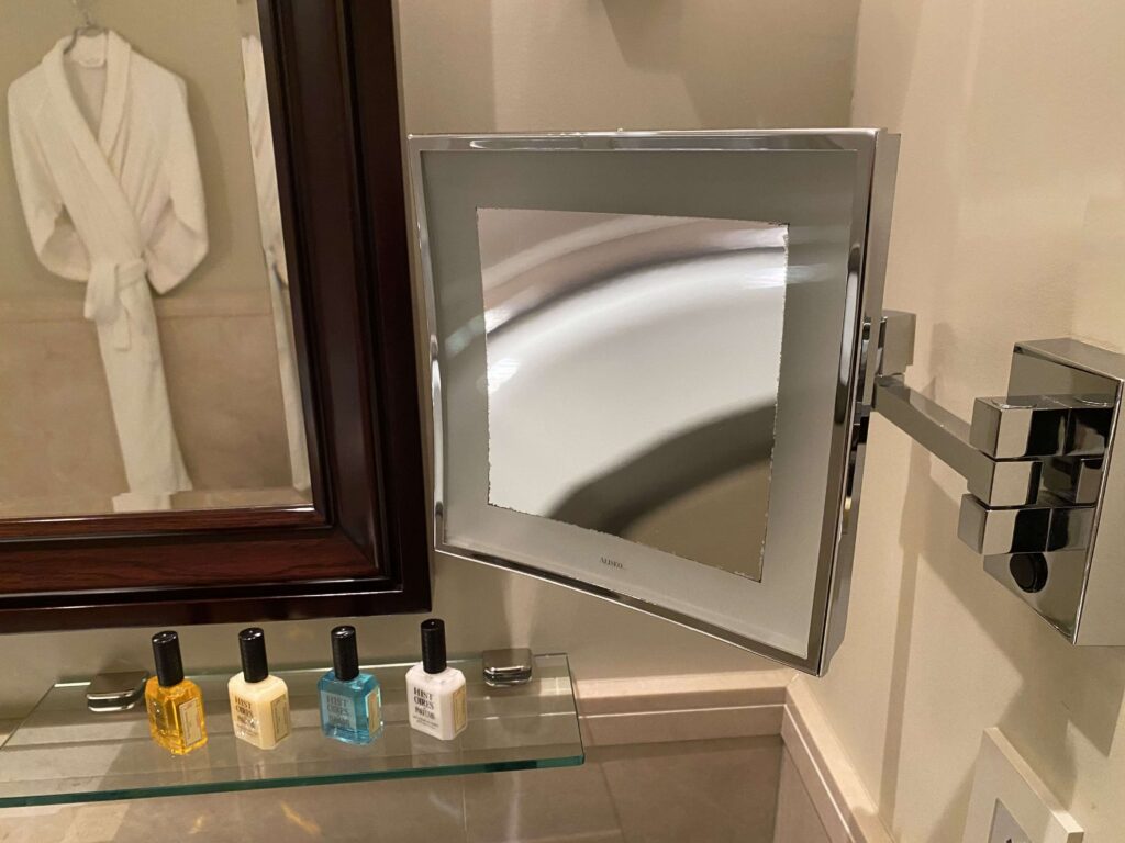 安定の拡大鏡。拡大鏡って本当に便利なので、5つ星ホテル巡りをはじめてから欲しくなってしまったグッズNo.1なんですよね。顔のケアする時に便利すぎる。