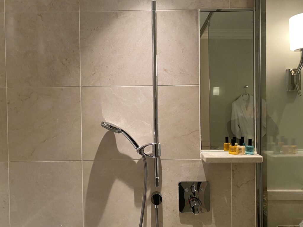 バスアメニティの設置に、レインシャワーと可動式のシャワー。完璧。